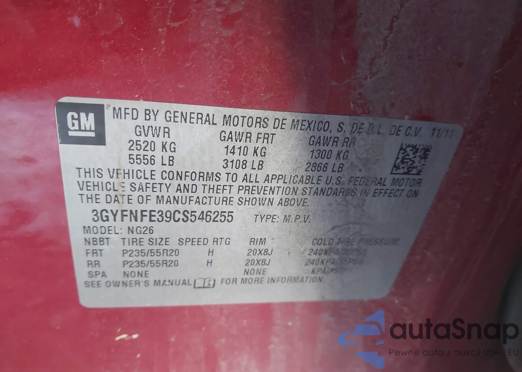 Автомобиль Cadillac SRX 2012 (VIN 3GYFNFE39CS546255) ранее не участвовал в торгах. Документы чистые, пробег соответствует или ниже среднего по рынку. Продаётся страховой компанией — рекомендуем покупку. Доставка в порт займет около 6–8 недель.