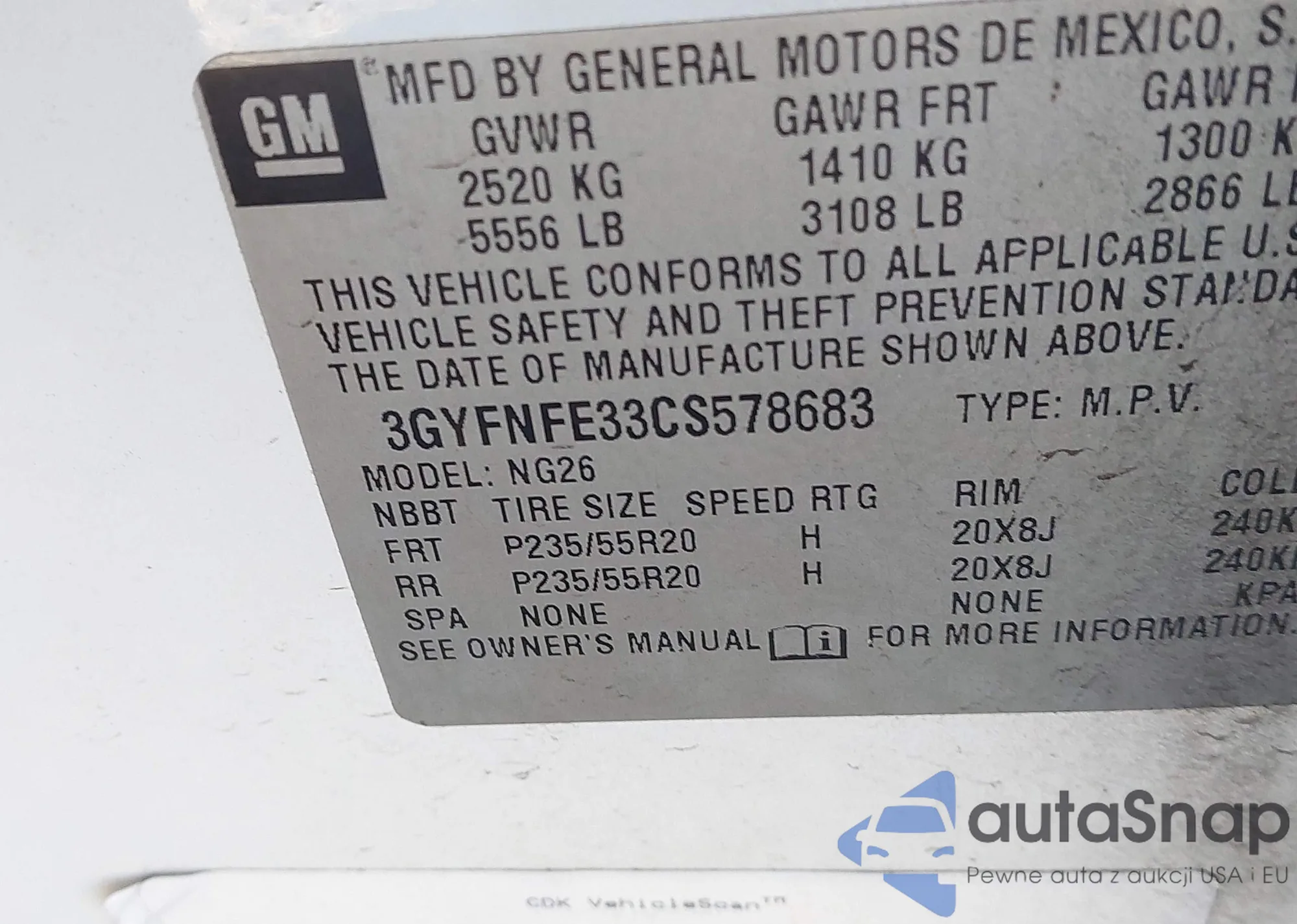 VIN: 3GYFNFE33CS578683