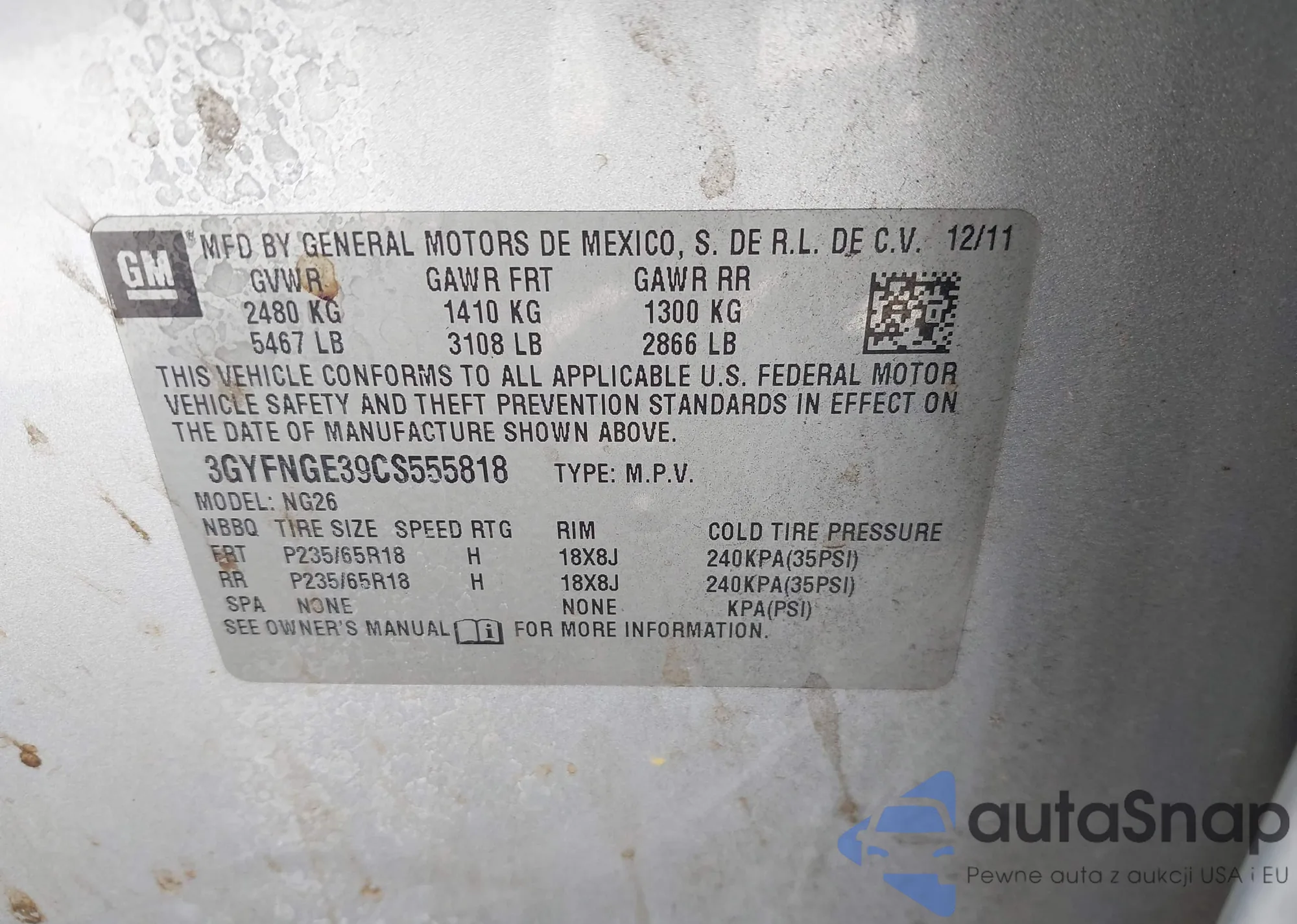 VIN: 3GYFNGE39CS555818