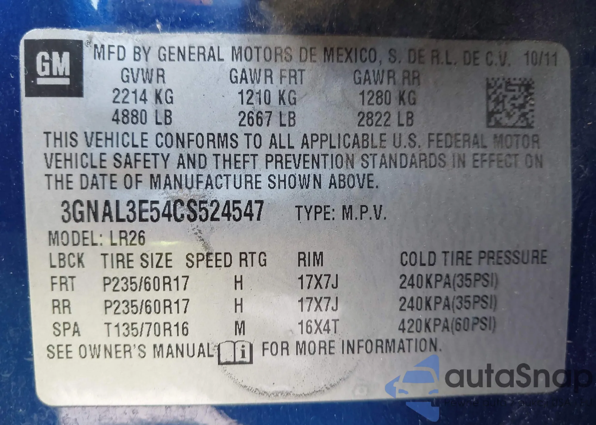 VIN: 3GNAL3E54CS524547
