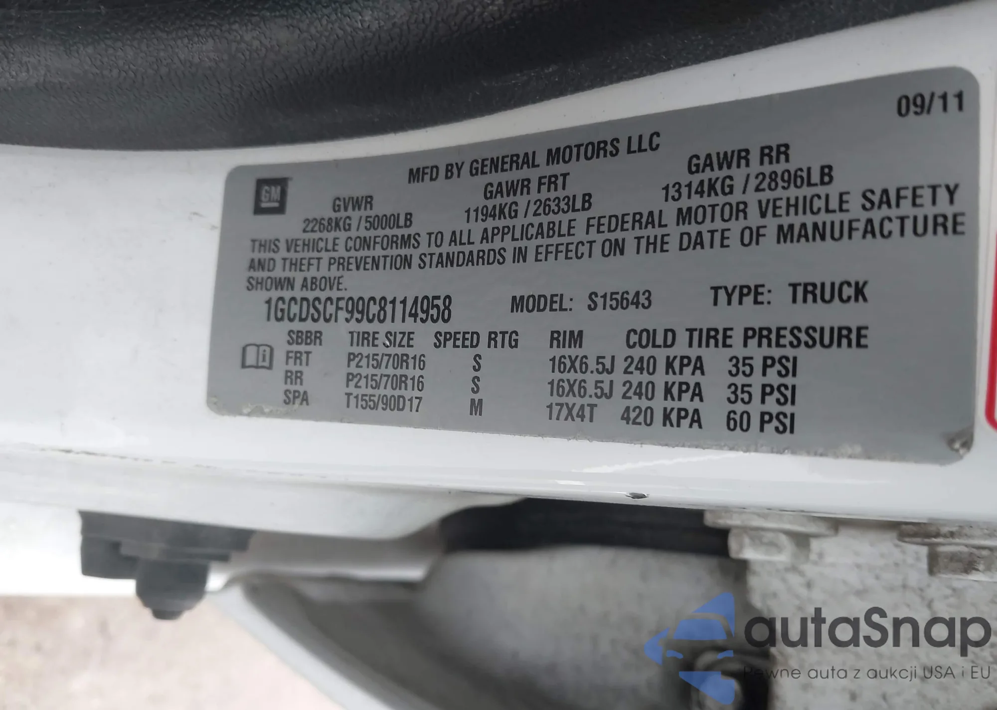 VIN: 1GCDSCF99C8114958