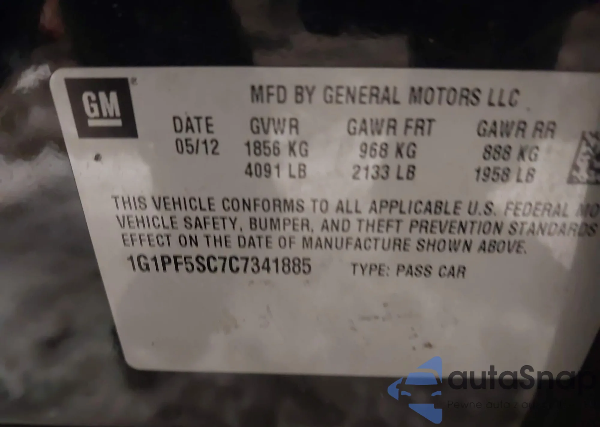VIN: 1G1PF5SC7C7341885