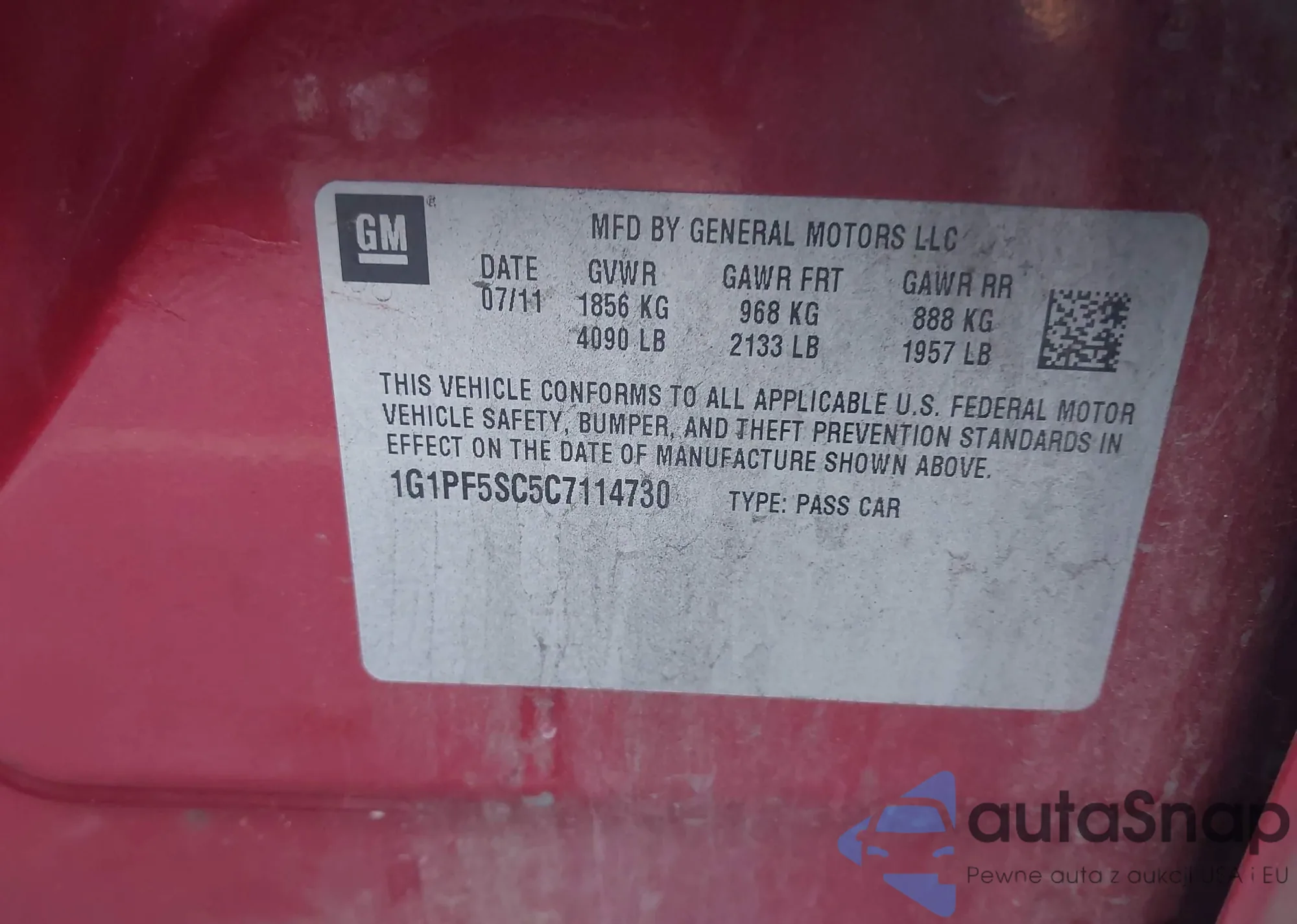 Автомобиль Chevrolet Cruze 2012 (VIN 1G1PF5SC5C7114730) ранее не участвовал в торгах. Документы чистые, пробег соответствует или ниже среднего по рынку. Продаётся страховой компанией — рекомендуем покупку. Доставка в порт займет около 6–8 недель.