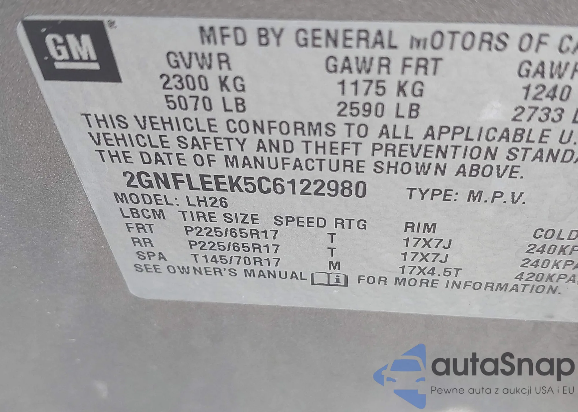 VIN: 2GNFLEEK5C6122980