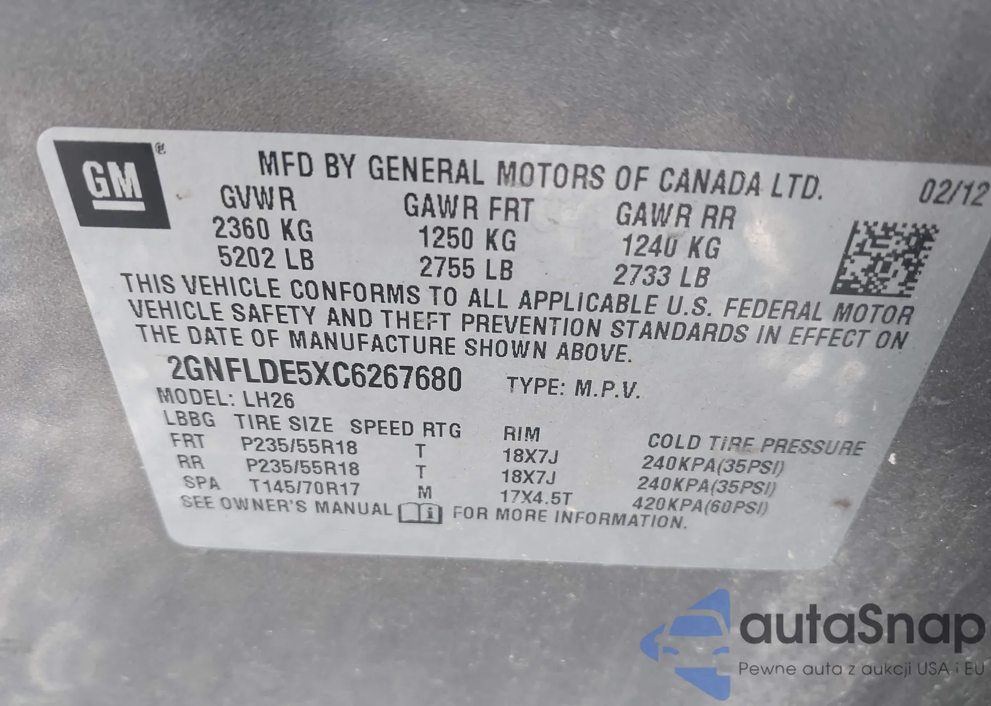 VIN: 2GNFLDE5XC6267680