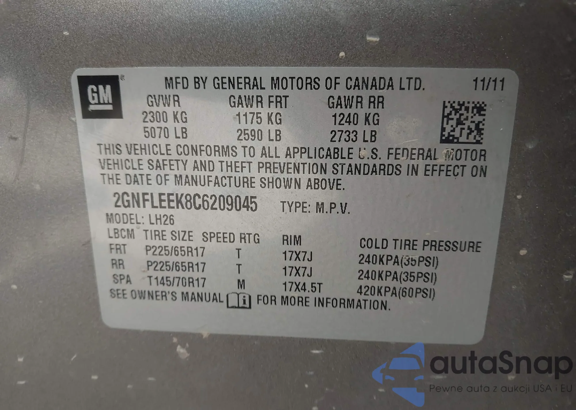 VIN: 2GNFLEEK8C6209045