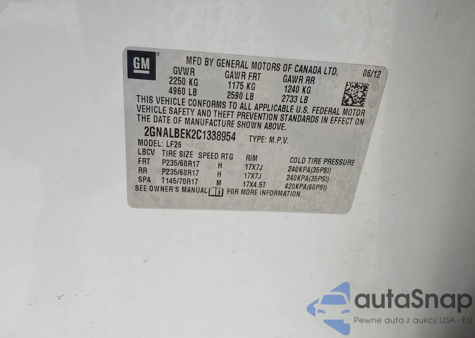 VIN: 2GNALBEK2C1338954