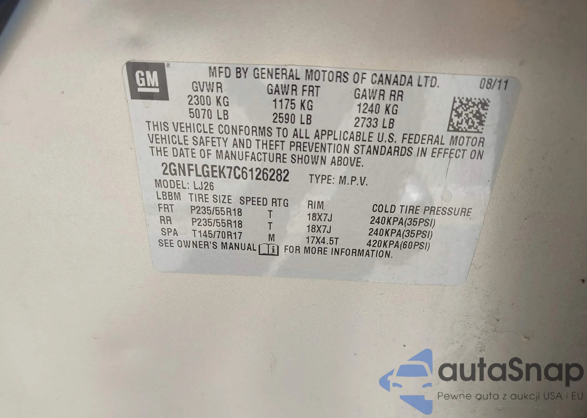 VIN: 2GNFLGEK7C6126282