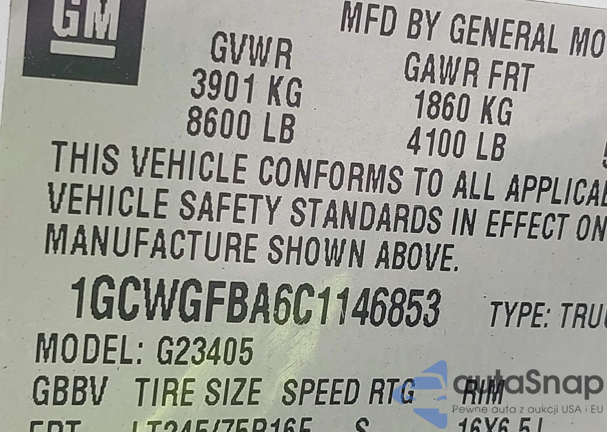 VIN: 1GCWGFBA6C1146853