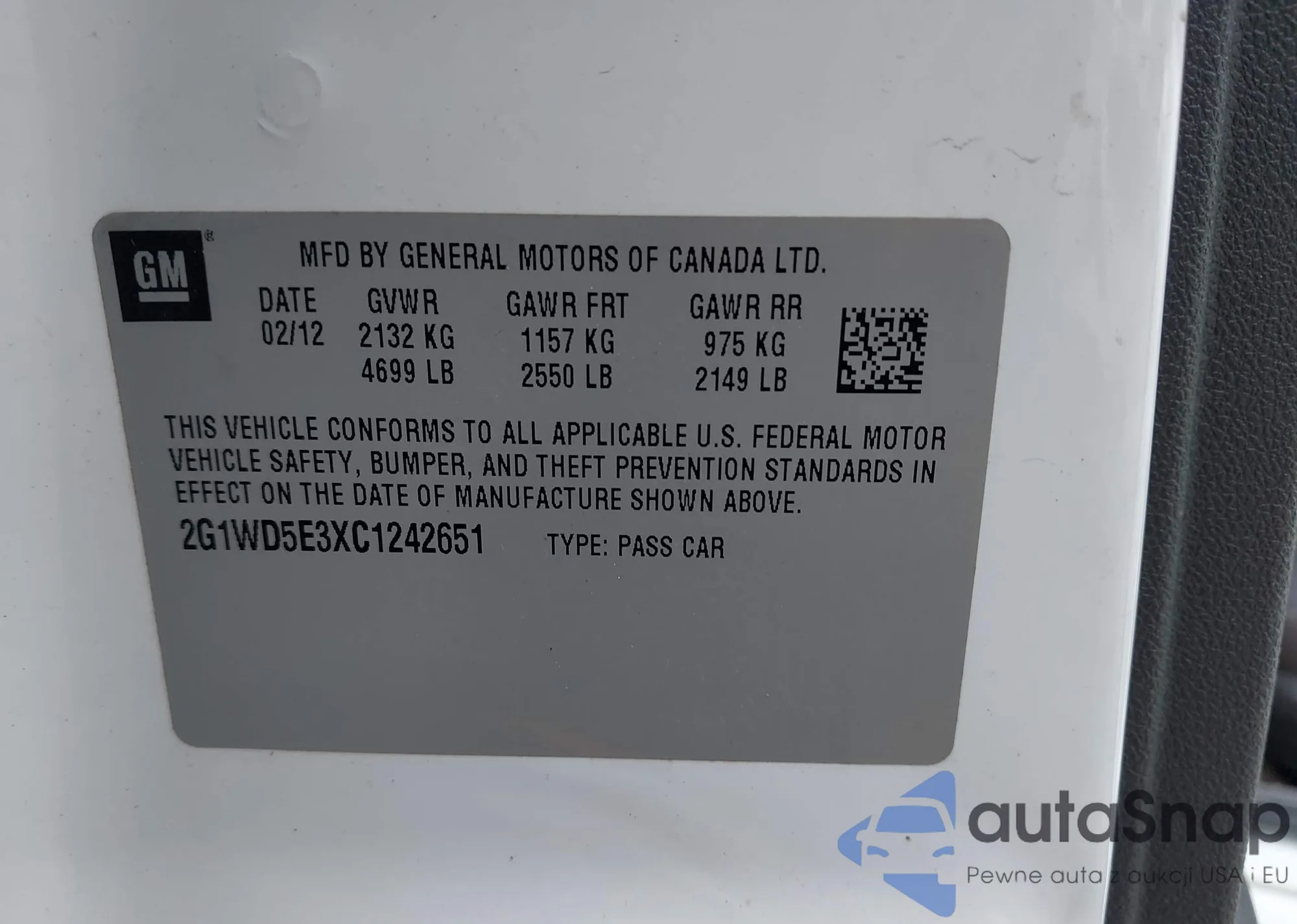 • VIN: 2G1WD5E3XC1242651