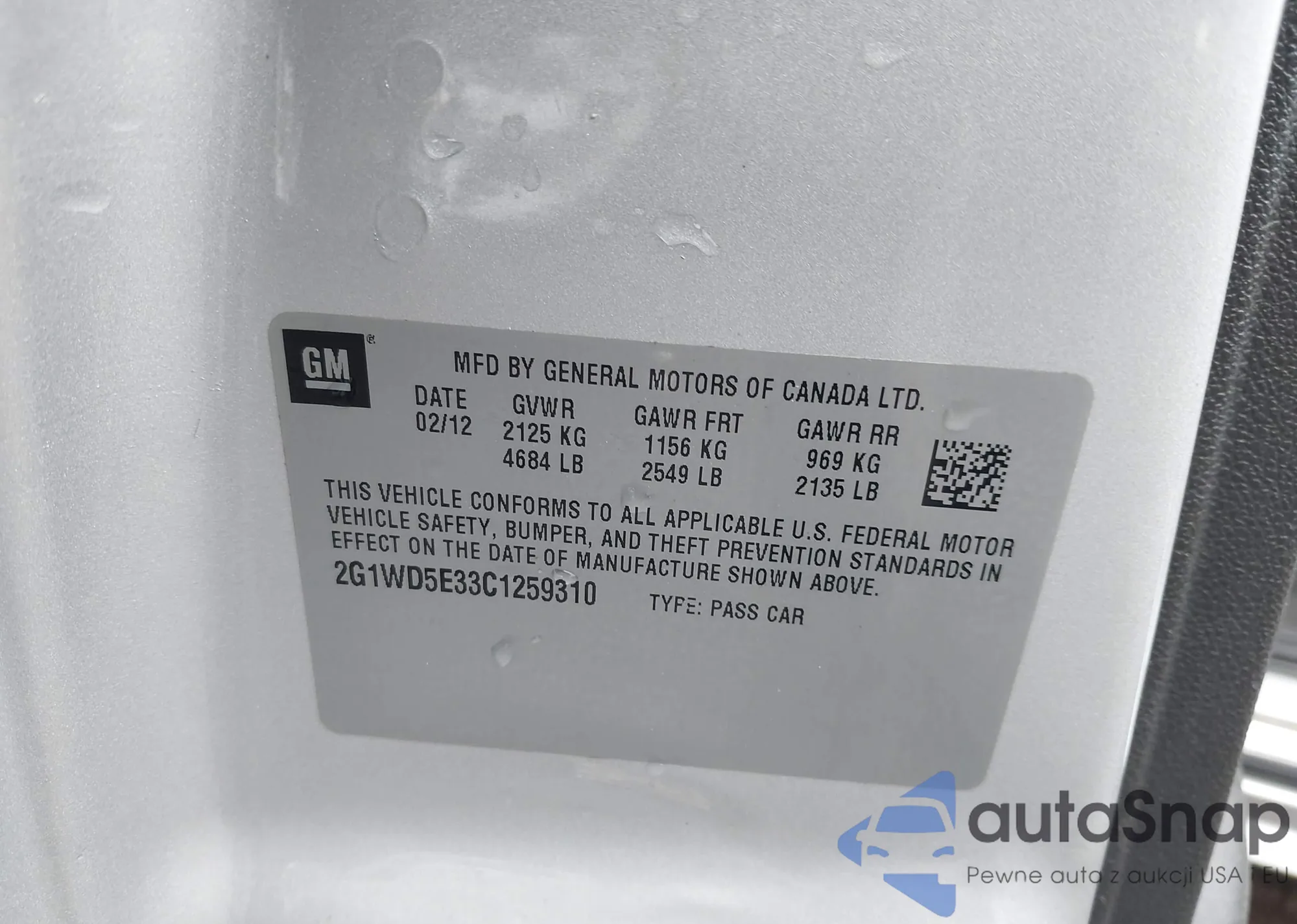 VIN: 2G1WD5E33C1259310