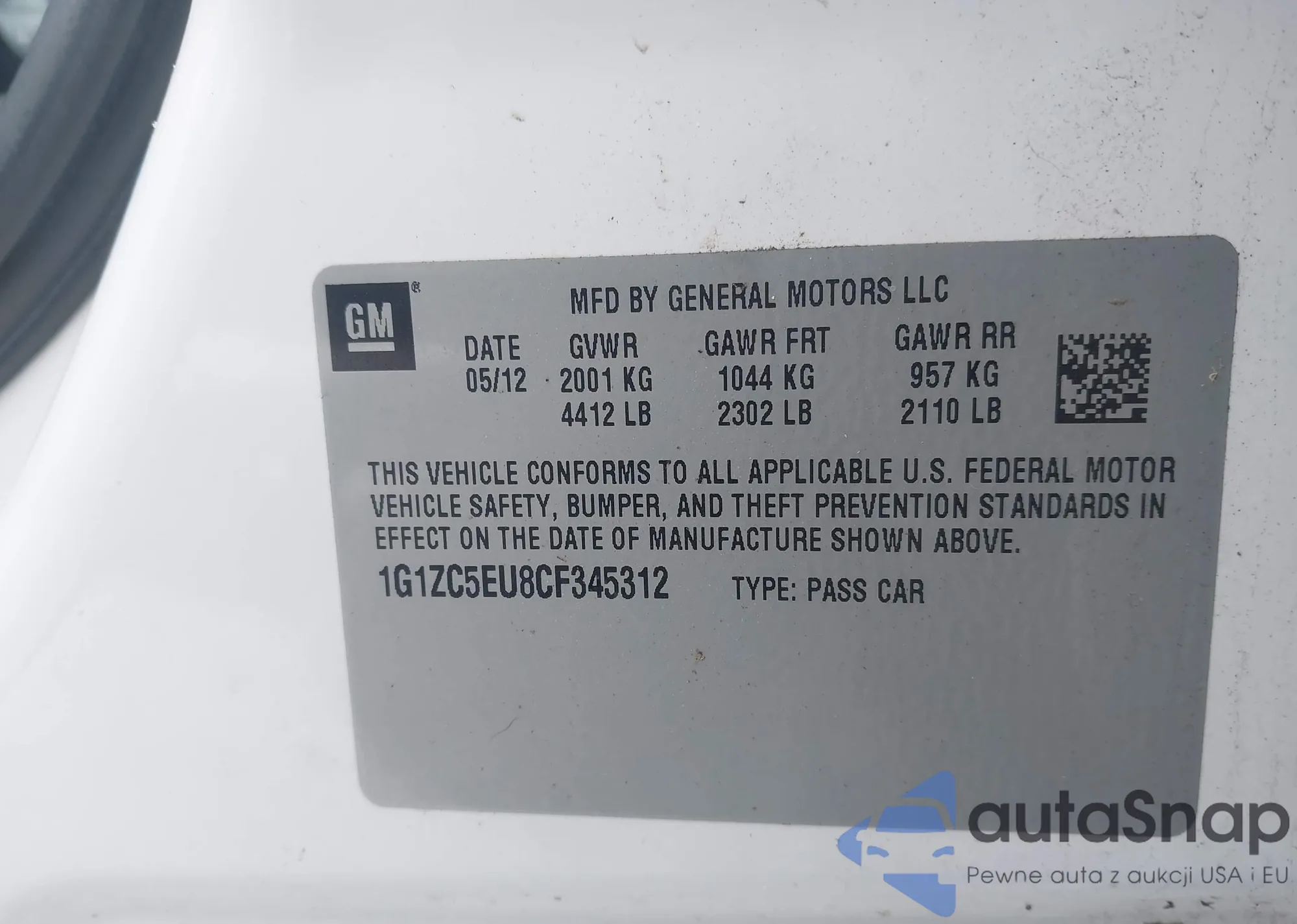 Автомобиль Chevrolet Malibu 2012 (VIN 1G1ZC5EU8CF345312) ранее не участвовал в торгах. Документы чистые, пробег соответствует или ниже среднего по рынку. Продаётся страховой компанией — рекомендуем покупку. Доставка в порт займет около 6–8 недель.