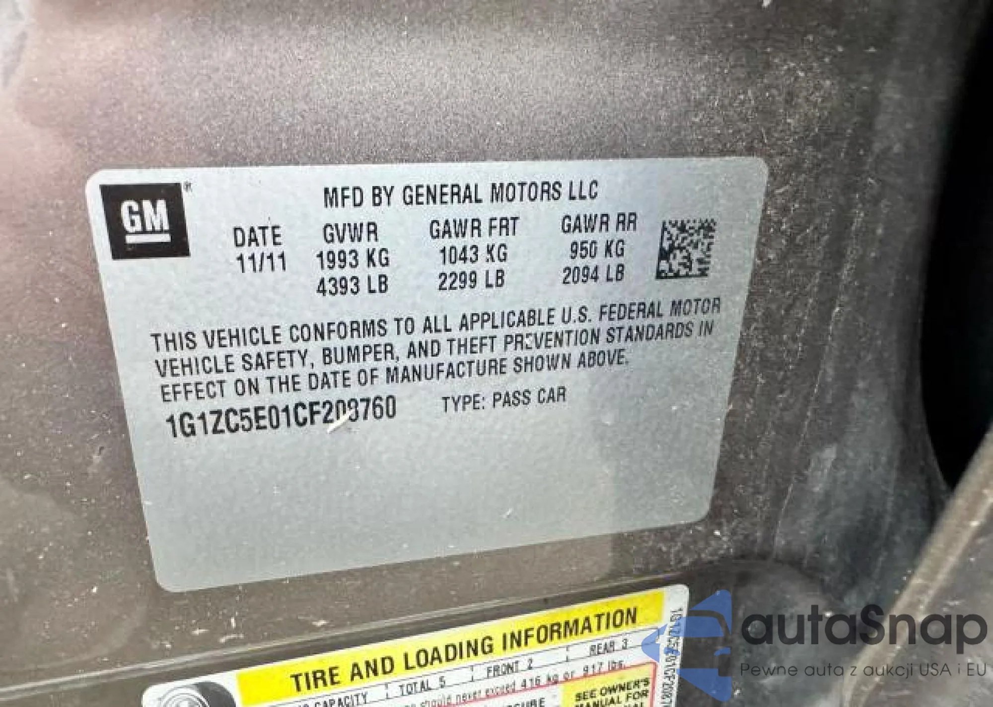 VIN: 1G1ZC5E01CF208760