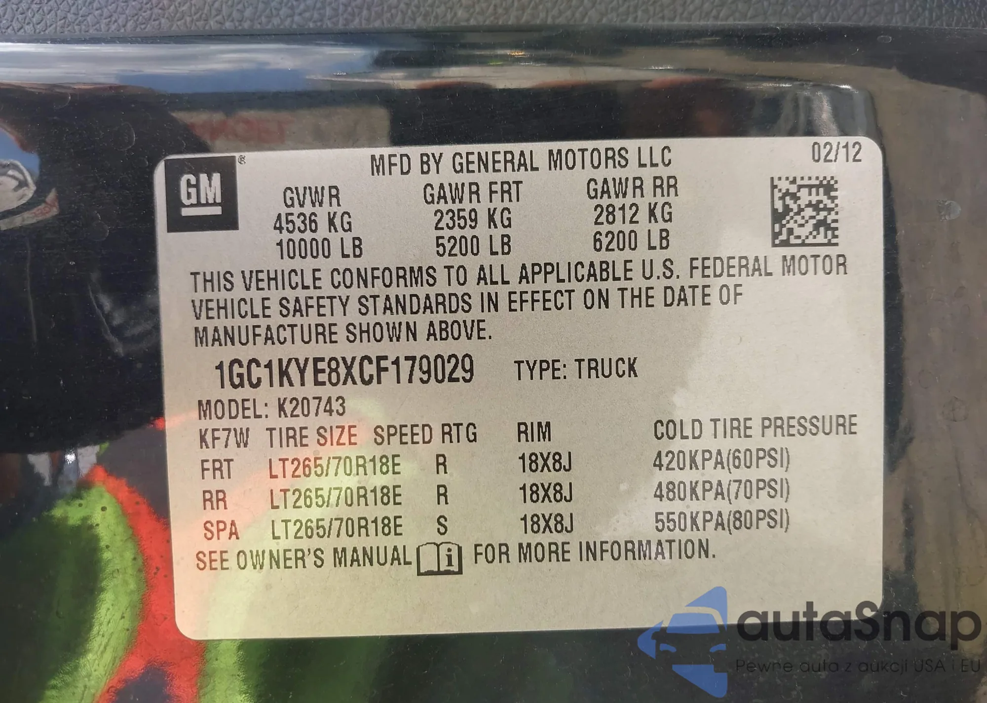 VIN: 1GC1KYE8XCF179029