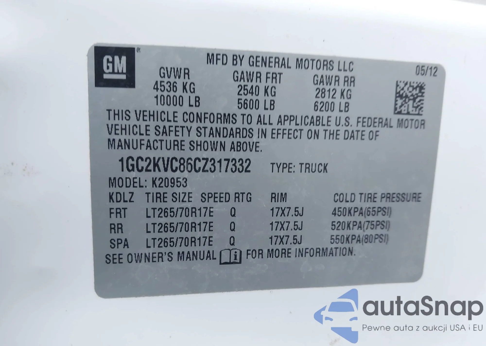 VIN: 1GC2KVC86CZ317332