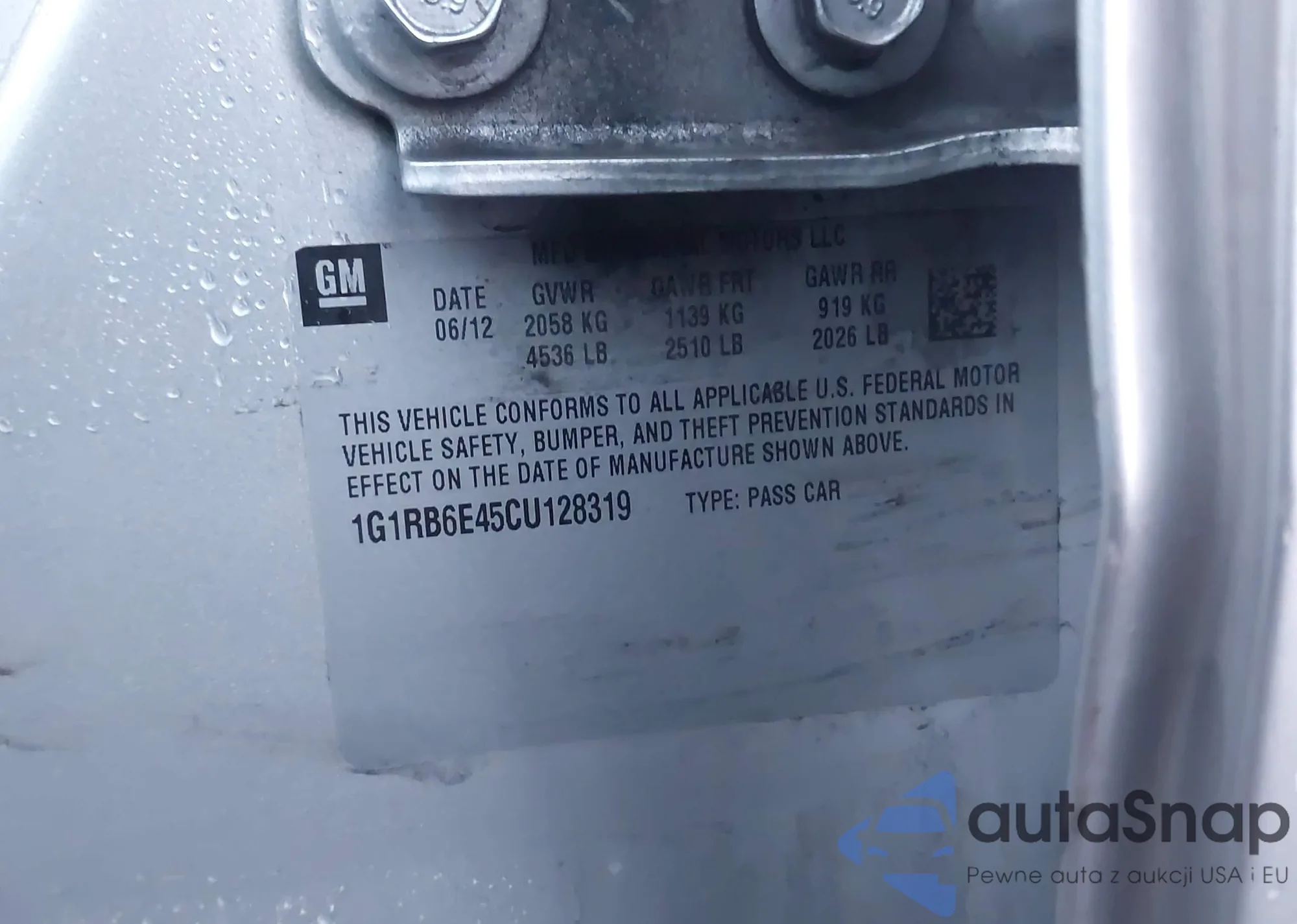 • VIN: 1G1RB6E45CU128319