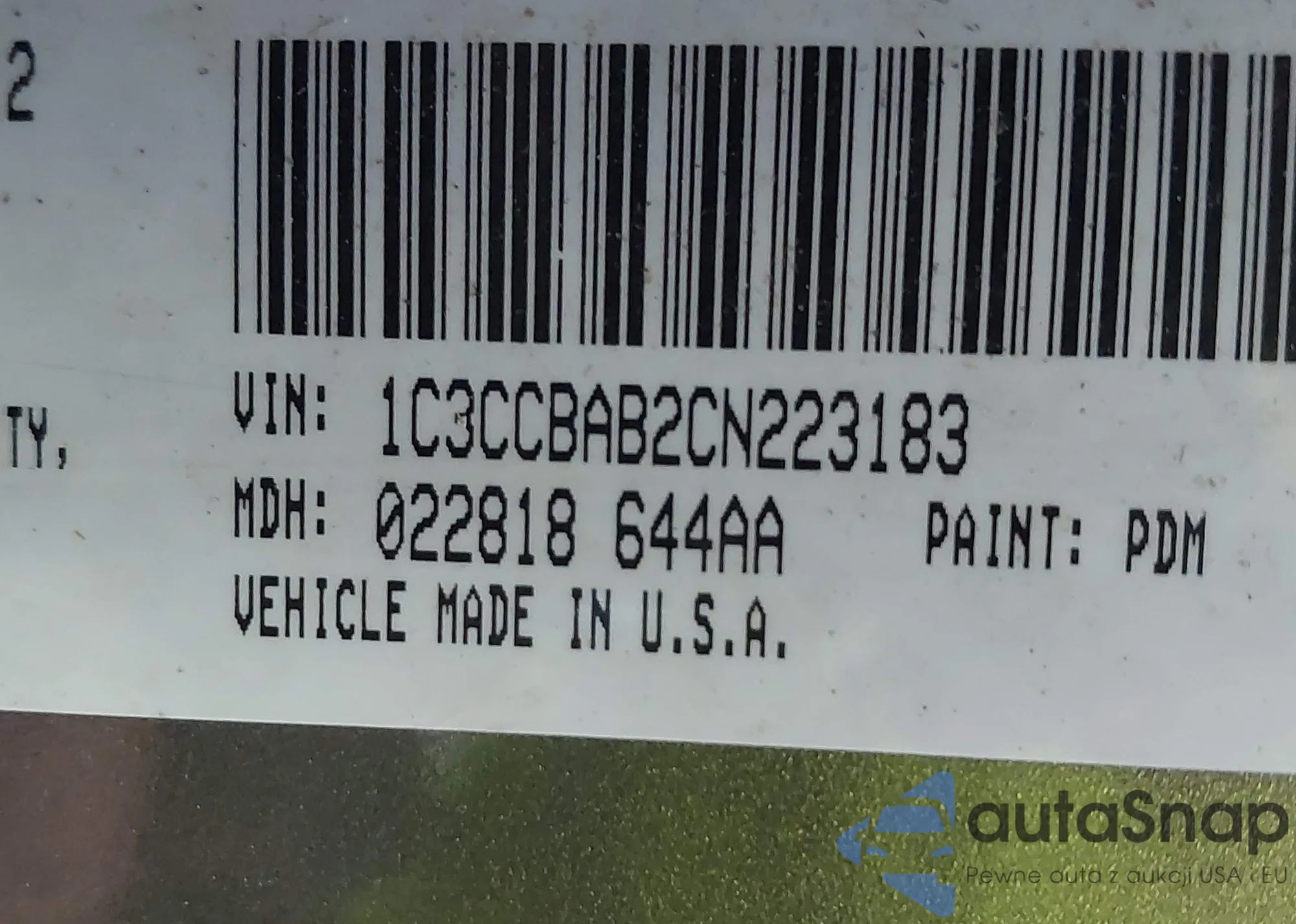 • VIN: 1C3CCBAB2CN223183