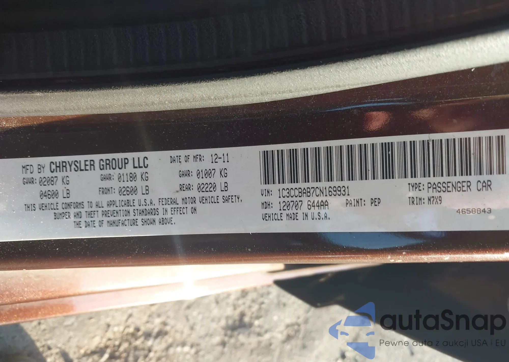 VIN: 1C3CCBAB7CN169931