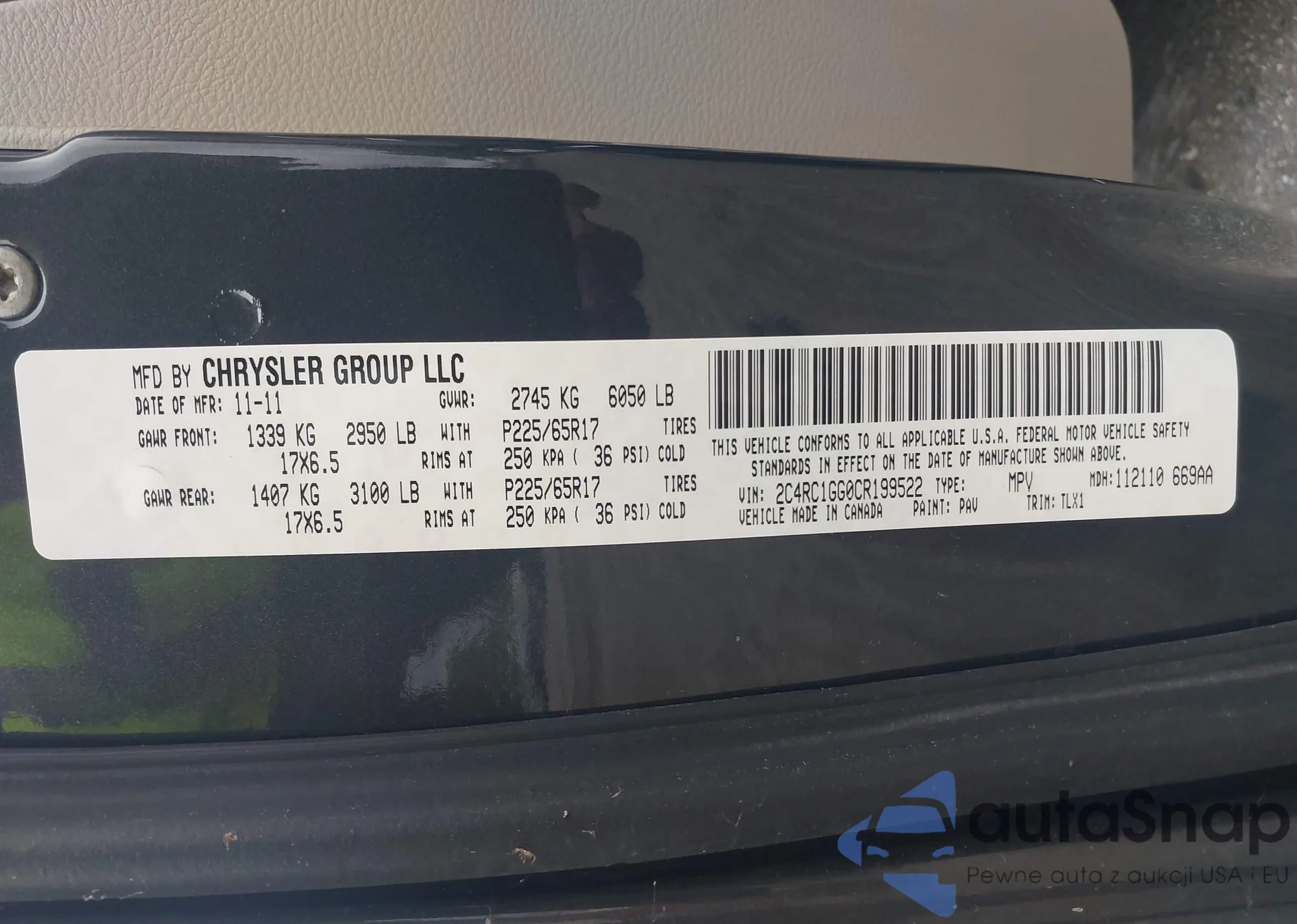 VIN: 2C4RC1GG0CR199522