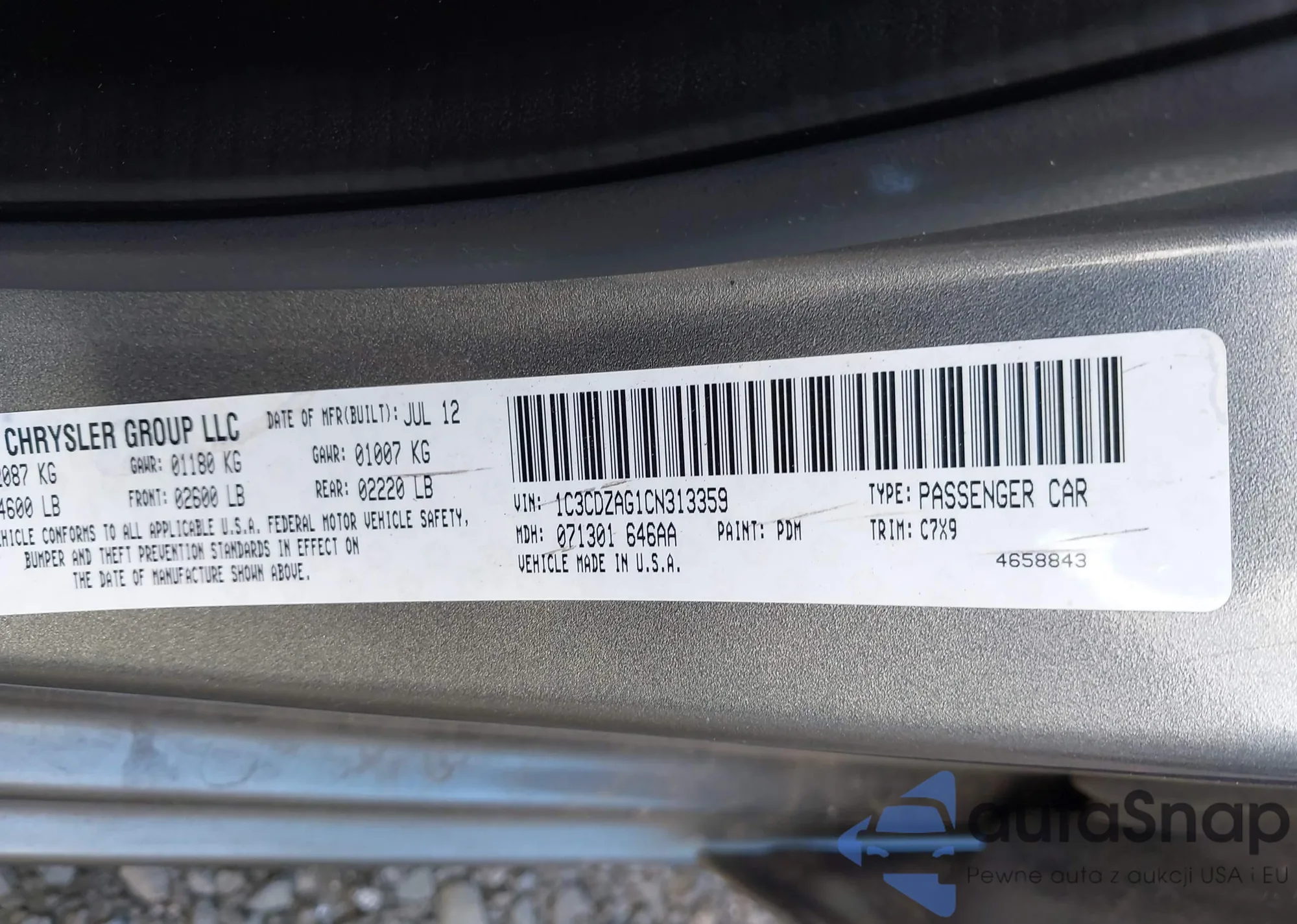 VIN: 1C3CDZAG1CN313359