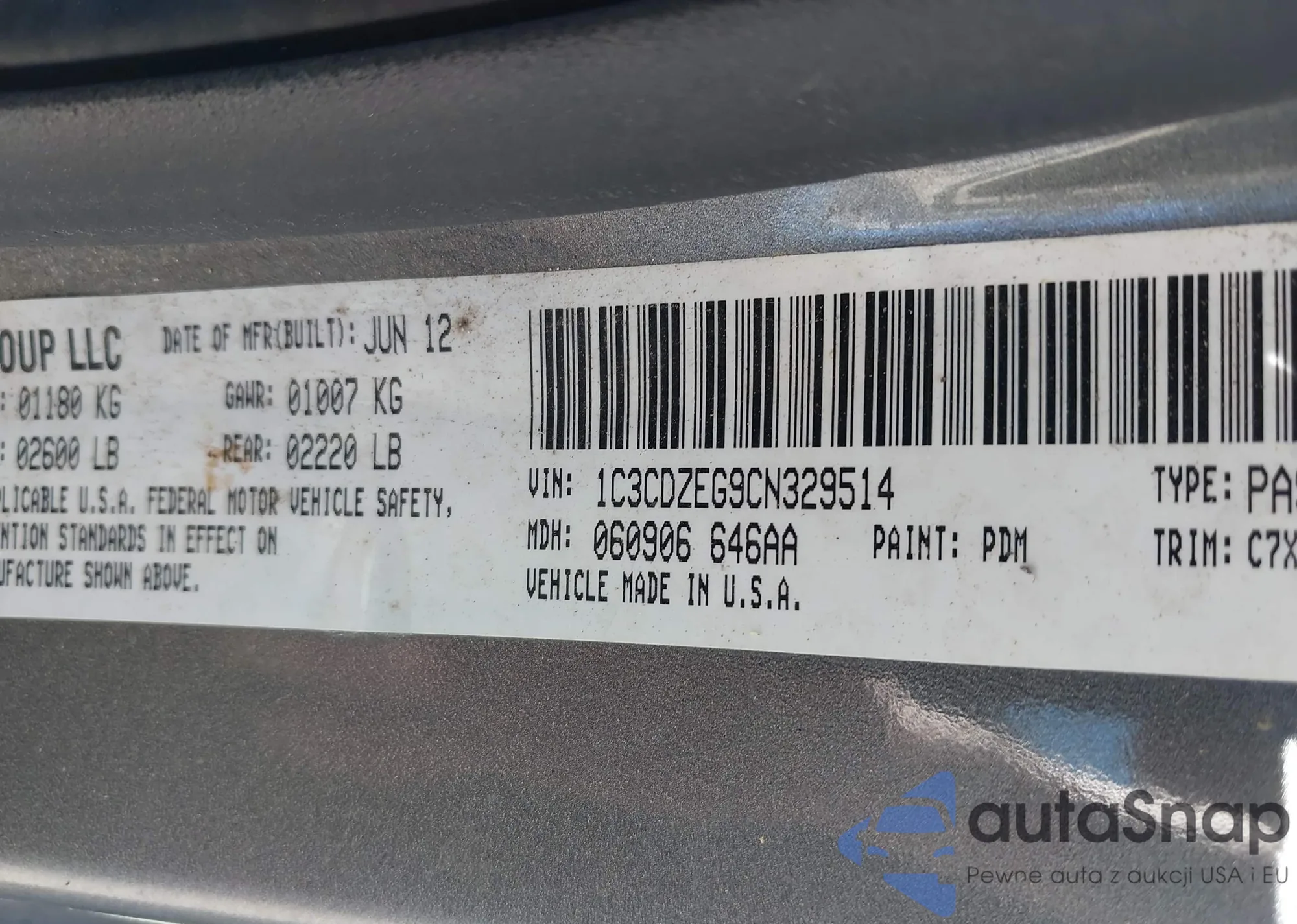 VIN: 1C3CDZEG9CN329514