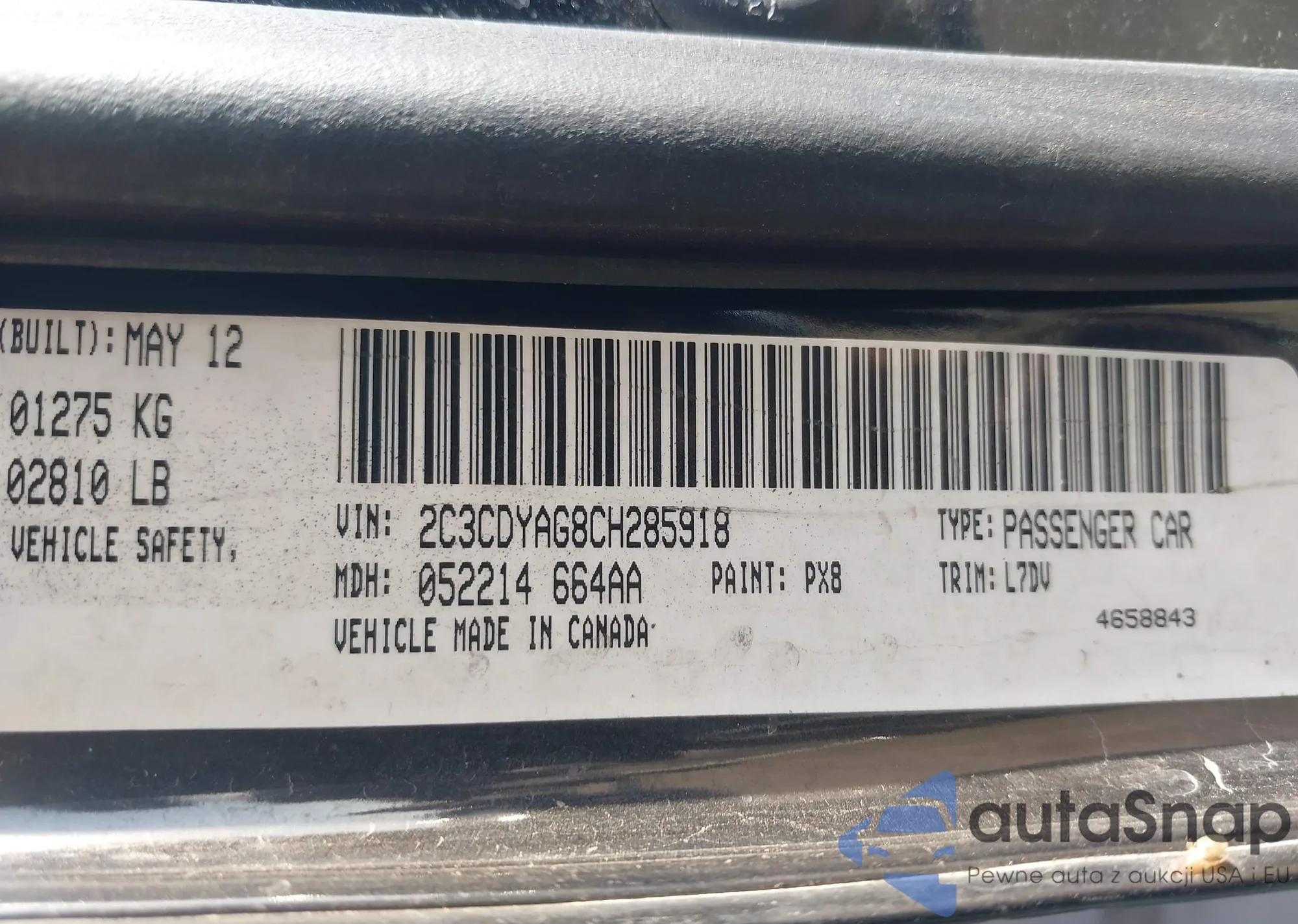 • VIN: 2C3CDYAG8CH285918