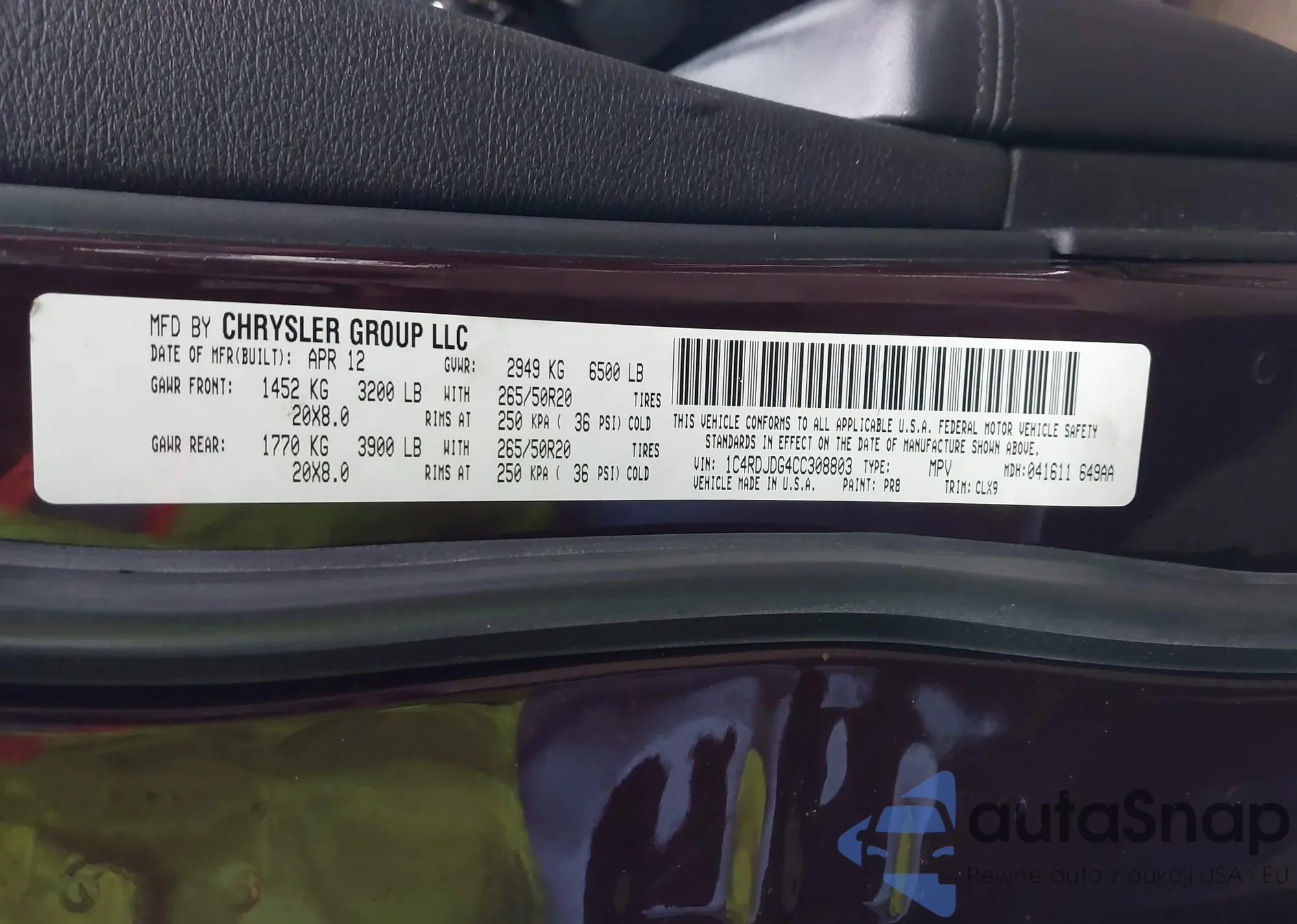 VIN: 1C4RDJDG4CC308803