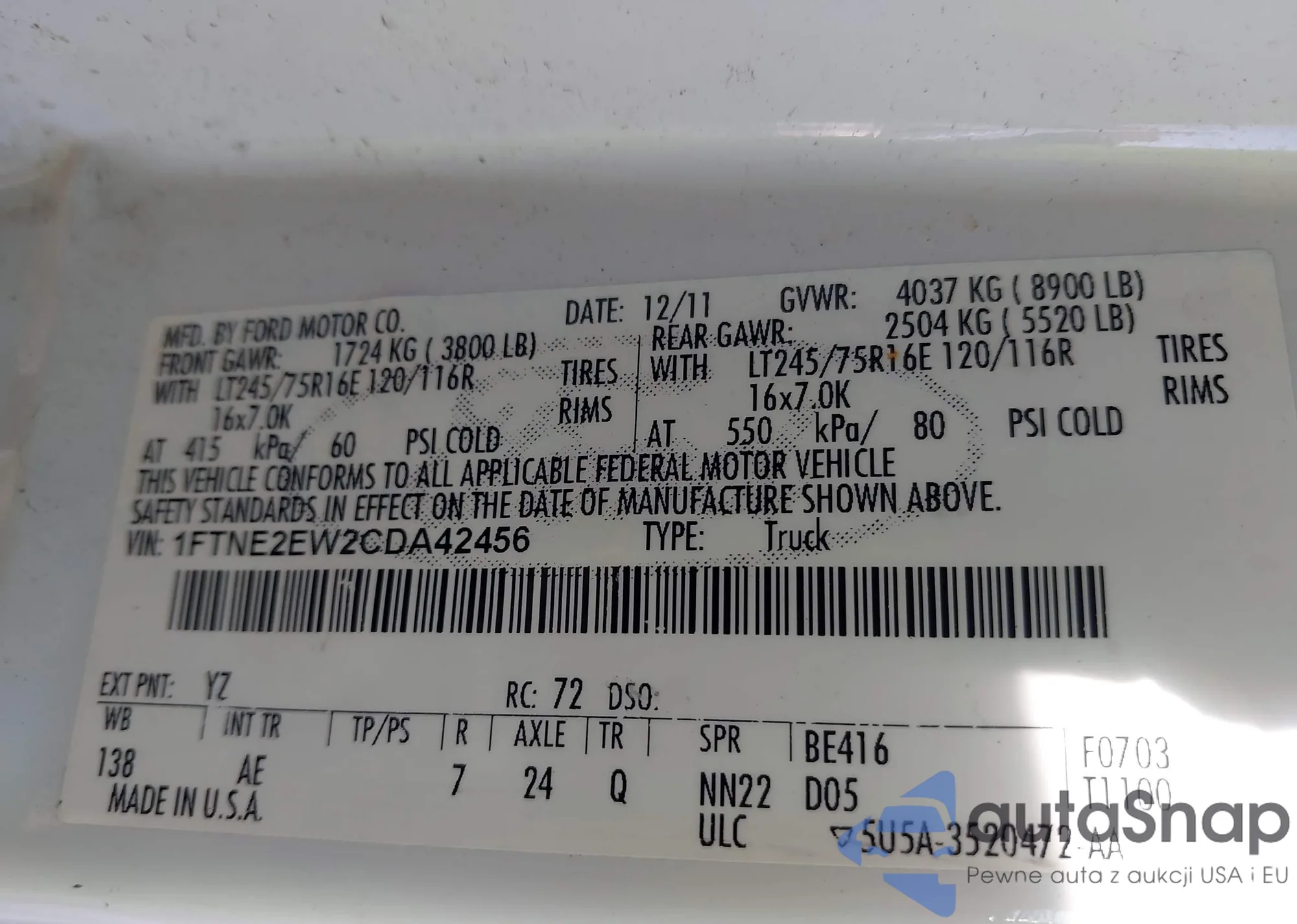 VIN: 1FTNE2EW2CDA42456
