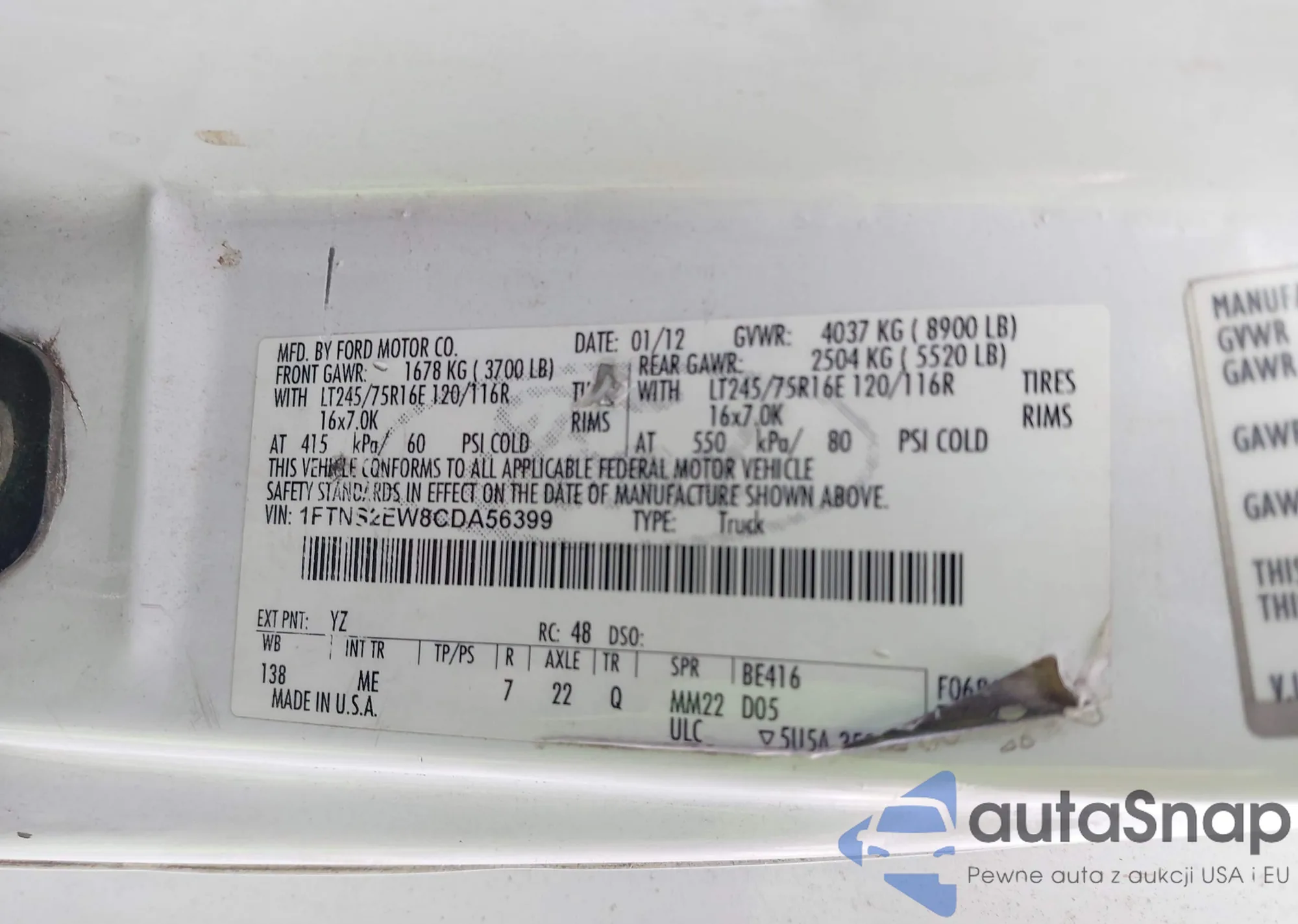 • VIN: 1FTNS2EW8CDA56399