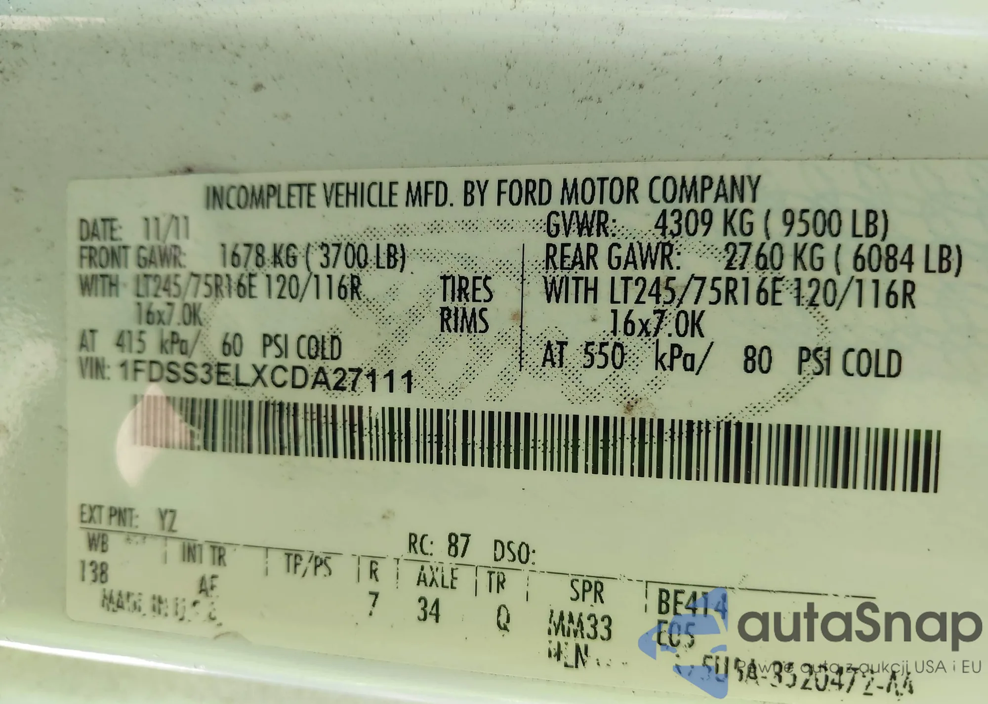 VIN: 1FDSS3ELXCDA27111