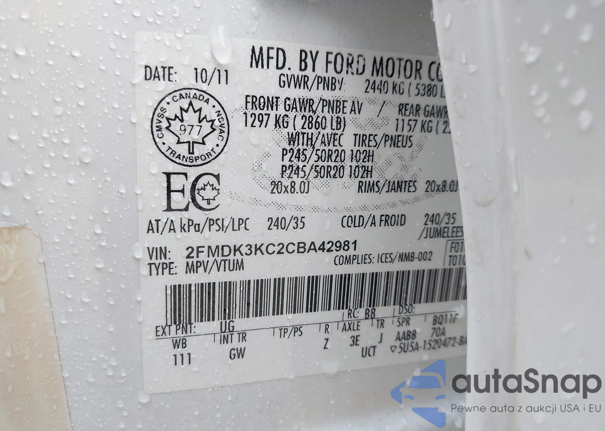 VIN: 2FMDK3KC2CBA42981