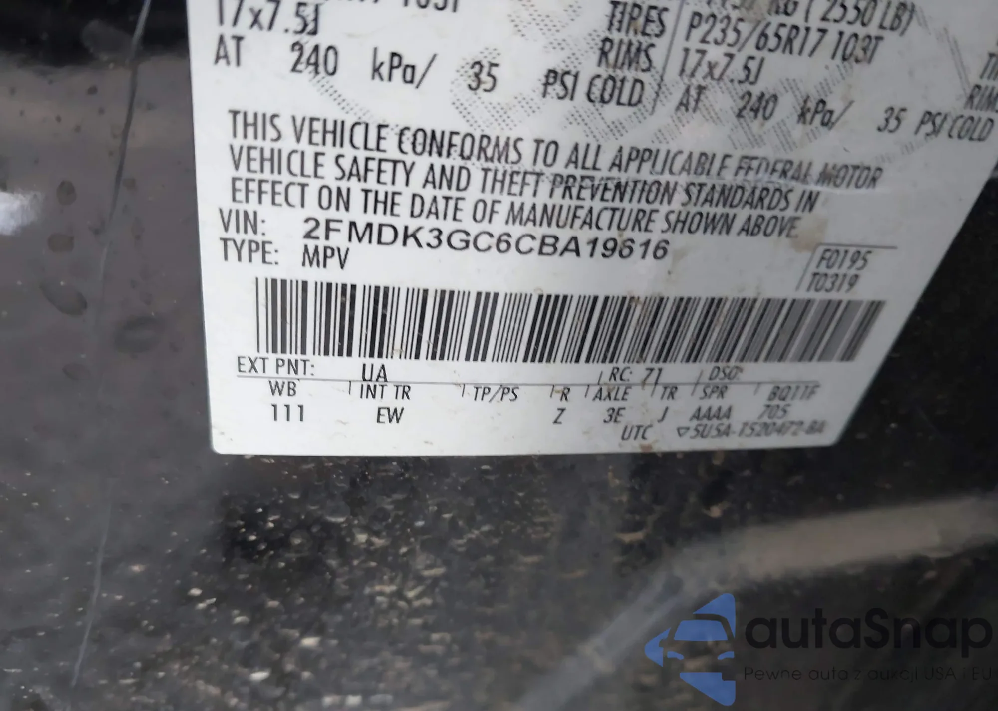 VIN: 2FMDK3GC6CBA19616