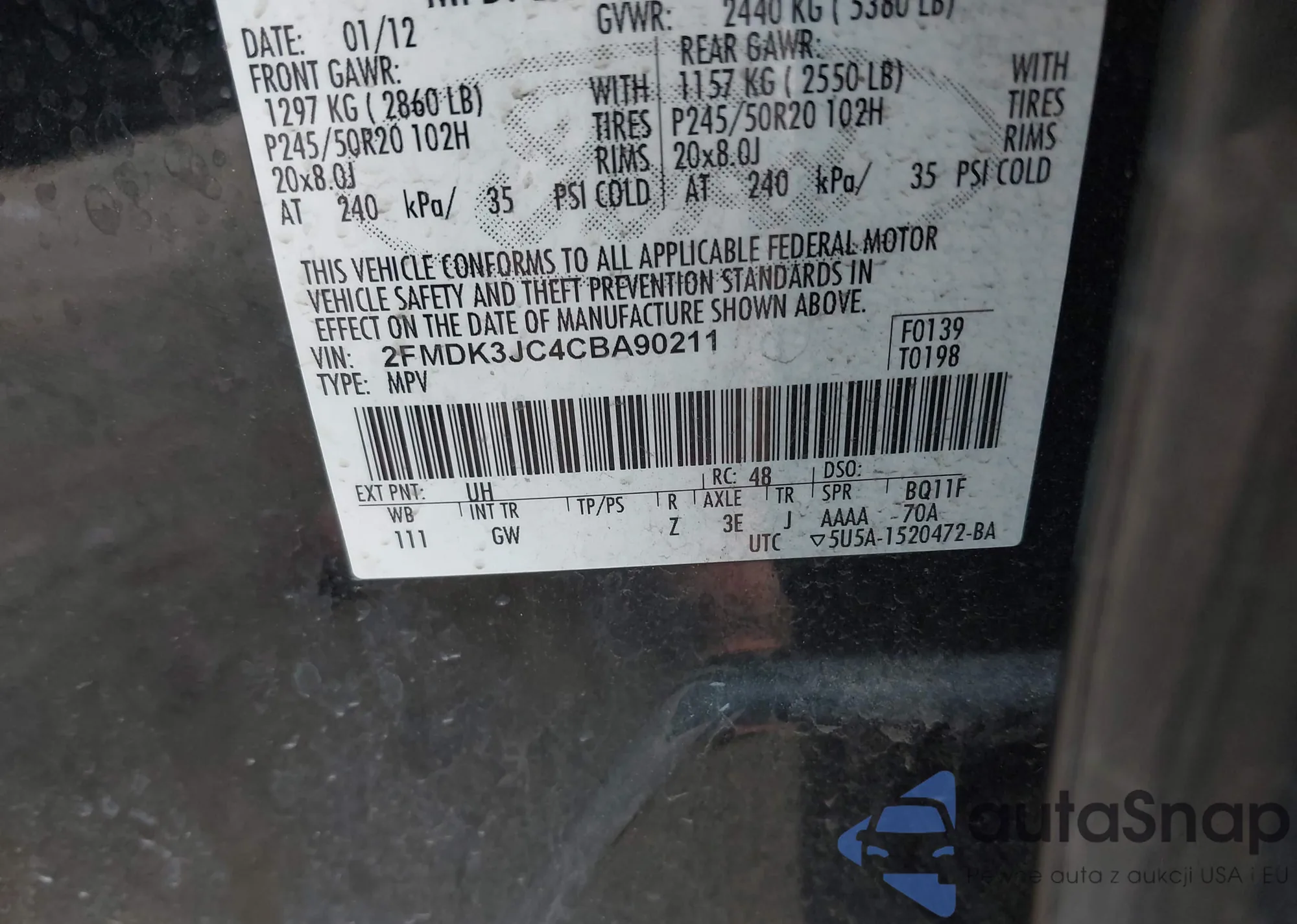 • VIN: 2FMDK3JC4CBA90211
