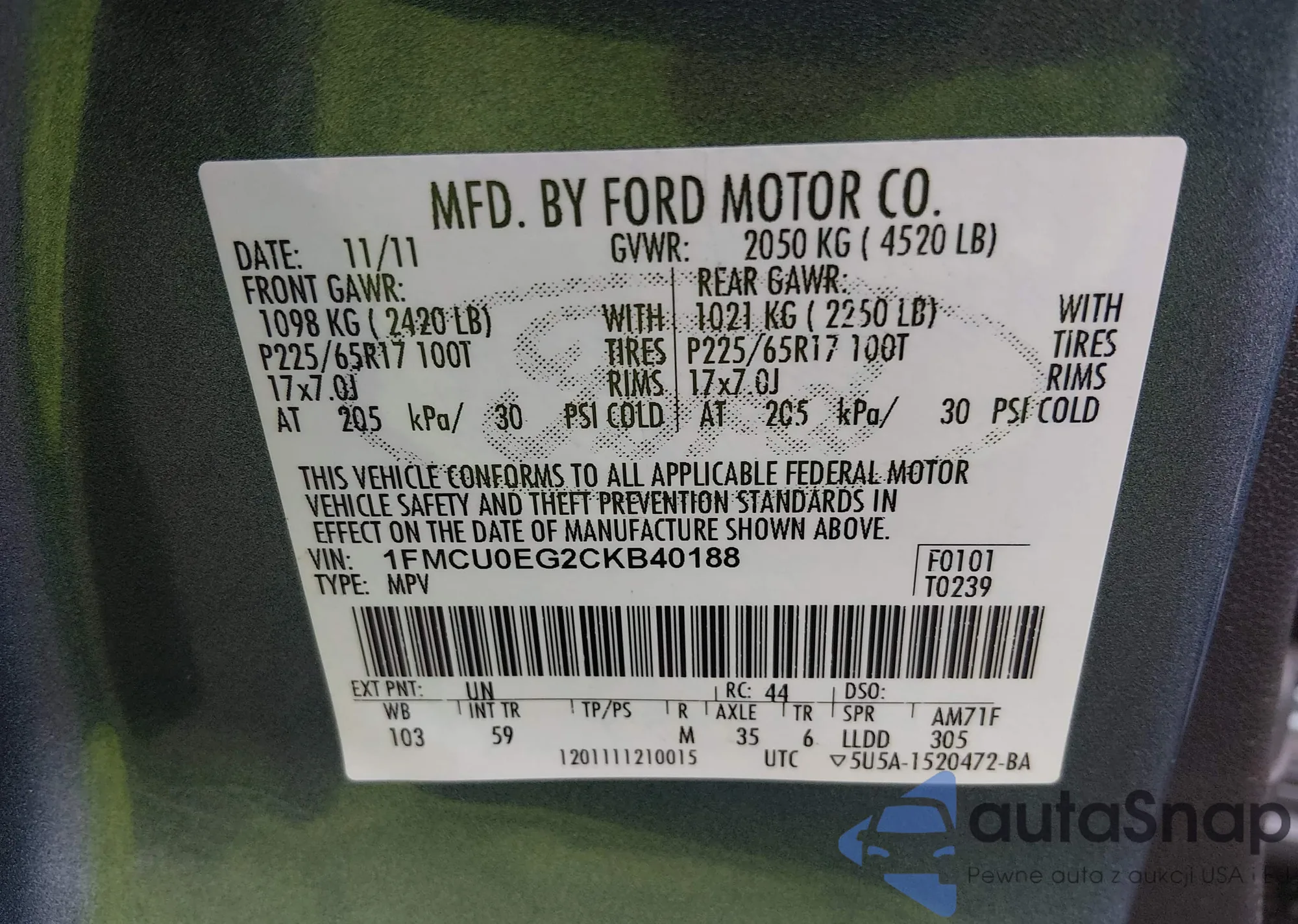 VIN: 1FMCU0EG2CKB40188