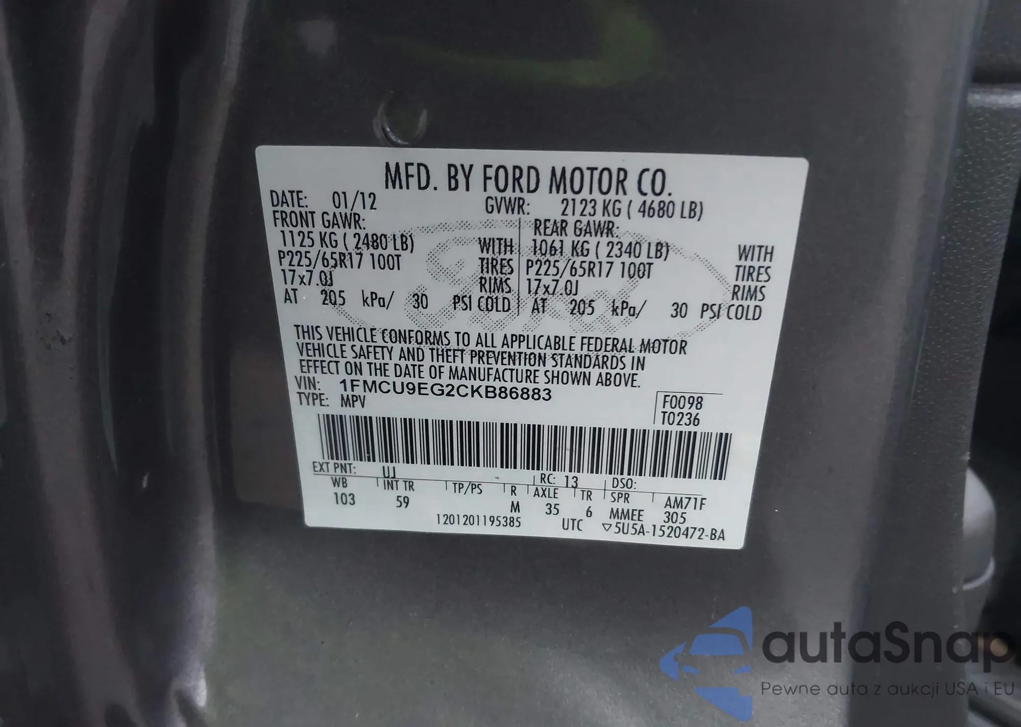 VIN: 1FMCU9EG2CKB86883