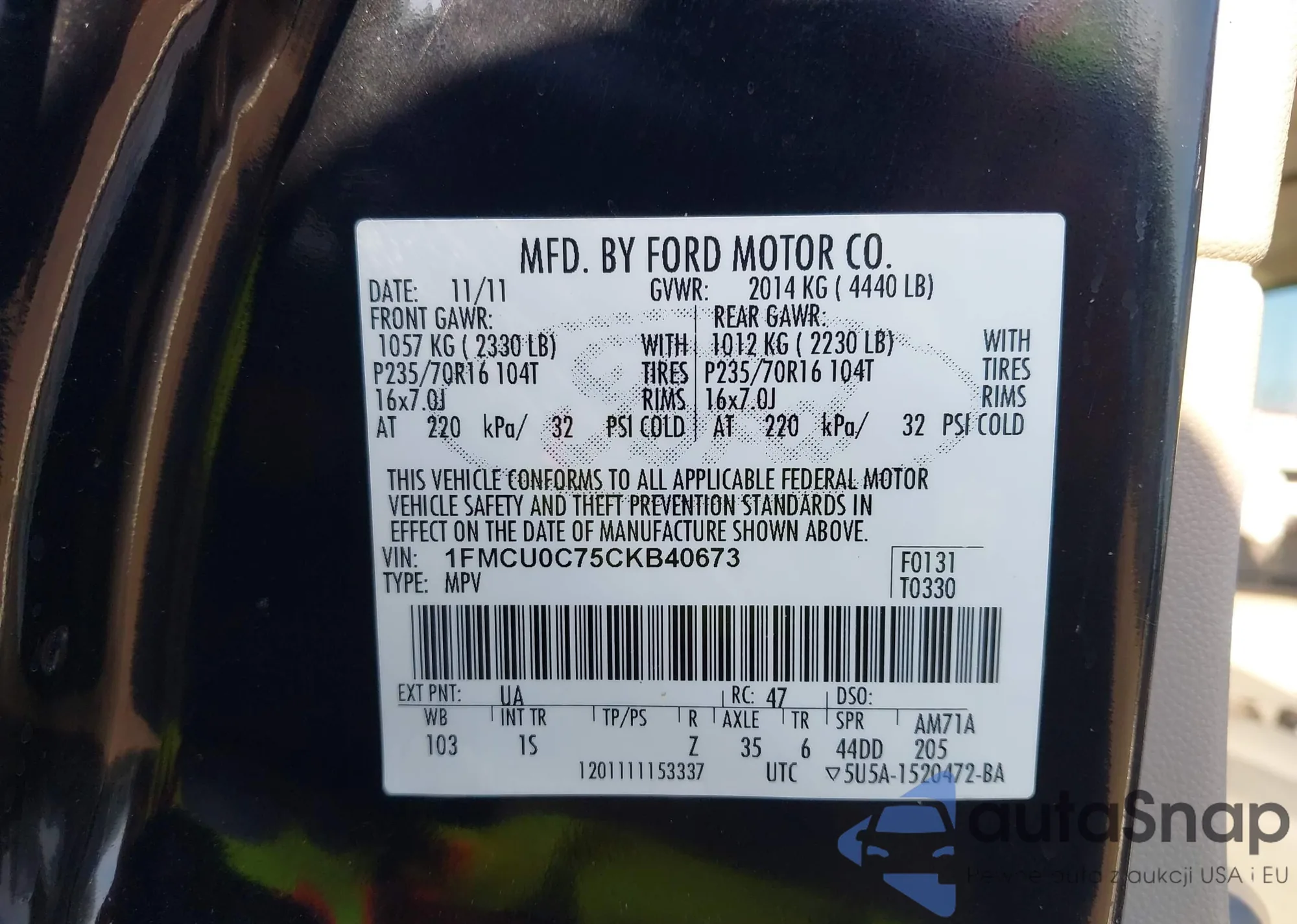 VIN: 1FMCU0C75CKB40673