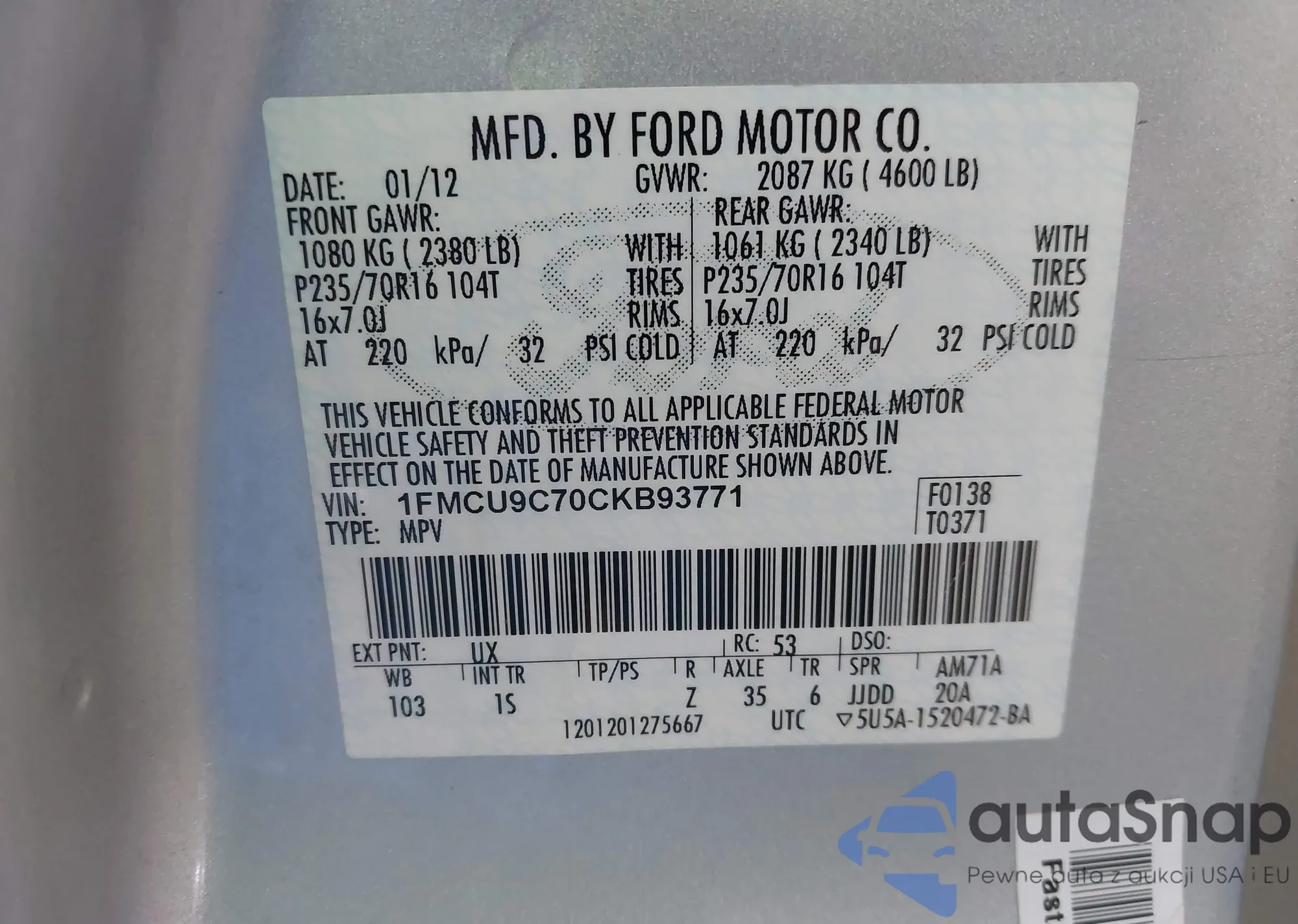 VIN: 1FMCU9C70CKB93771