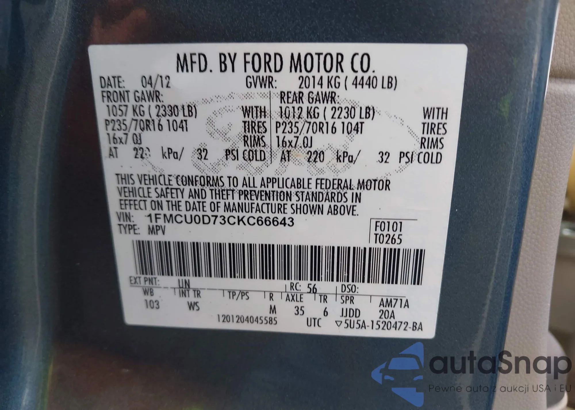 VIN: 1FMCU0D73CKC66643