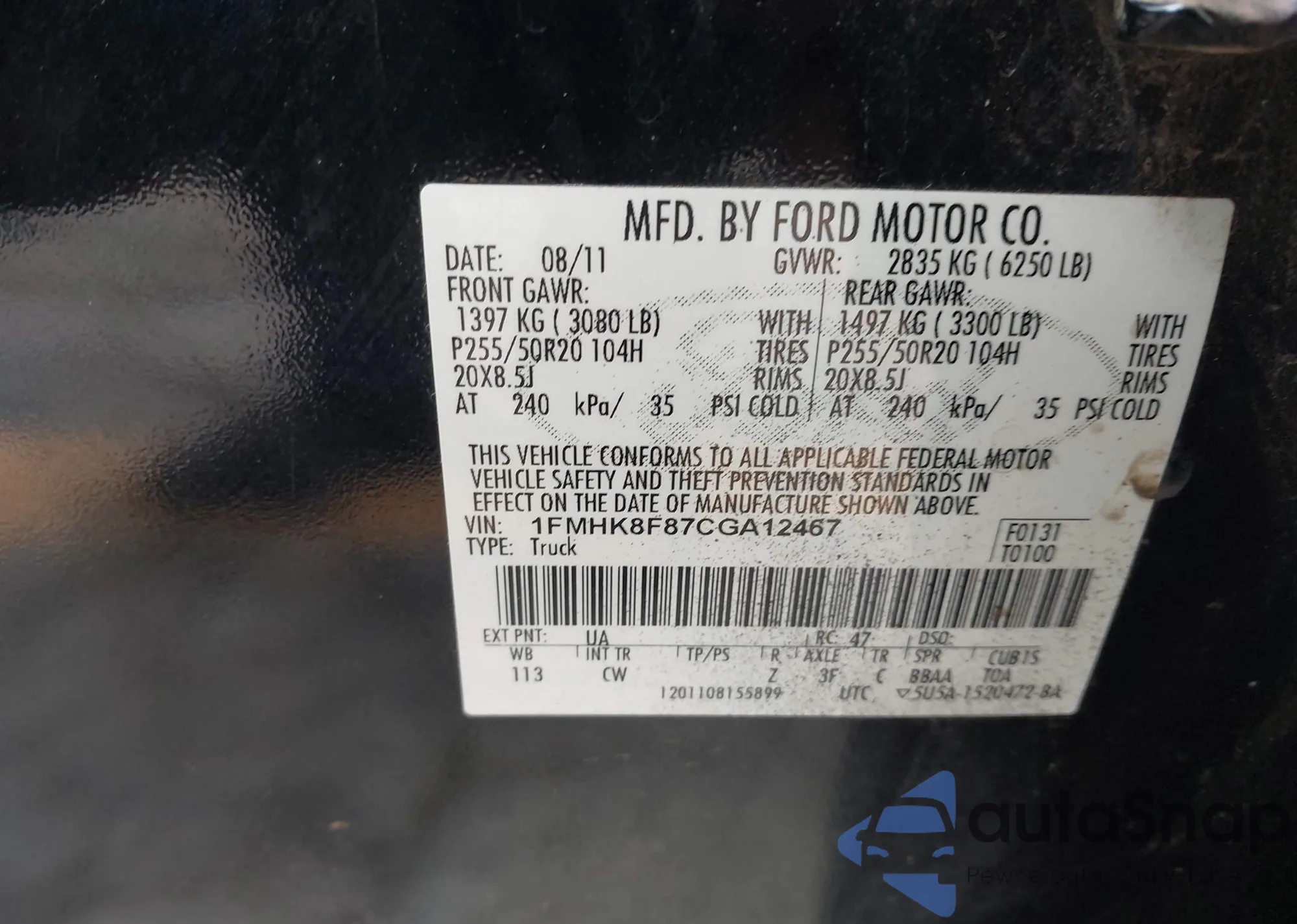• VIN: 1FMHK8F87CGA12467