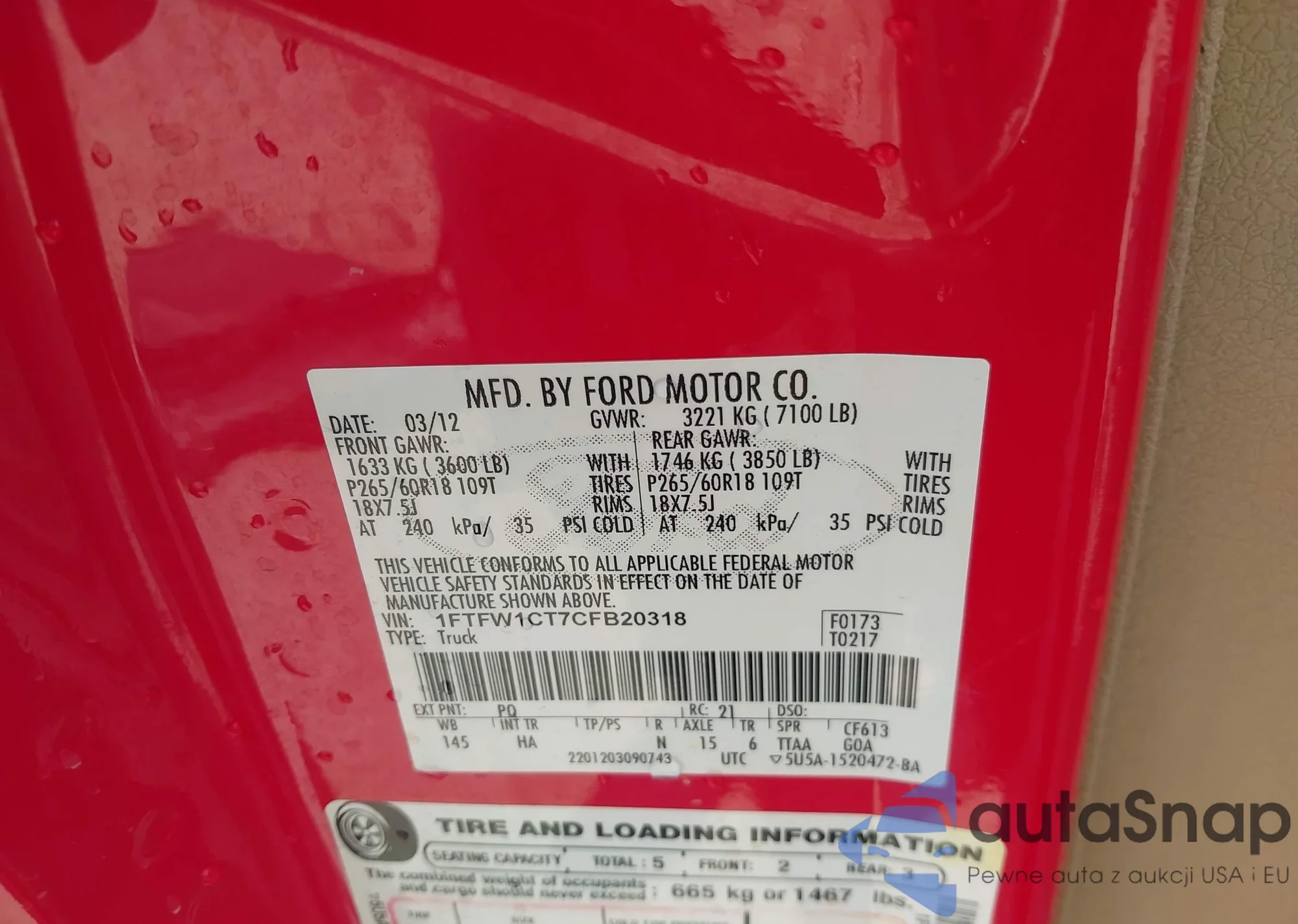 VIN: 1FTFW1CT7CFB20318