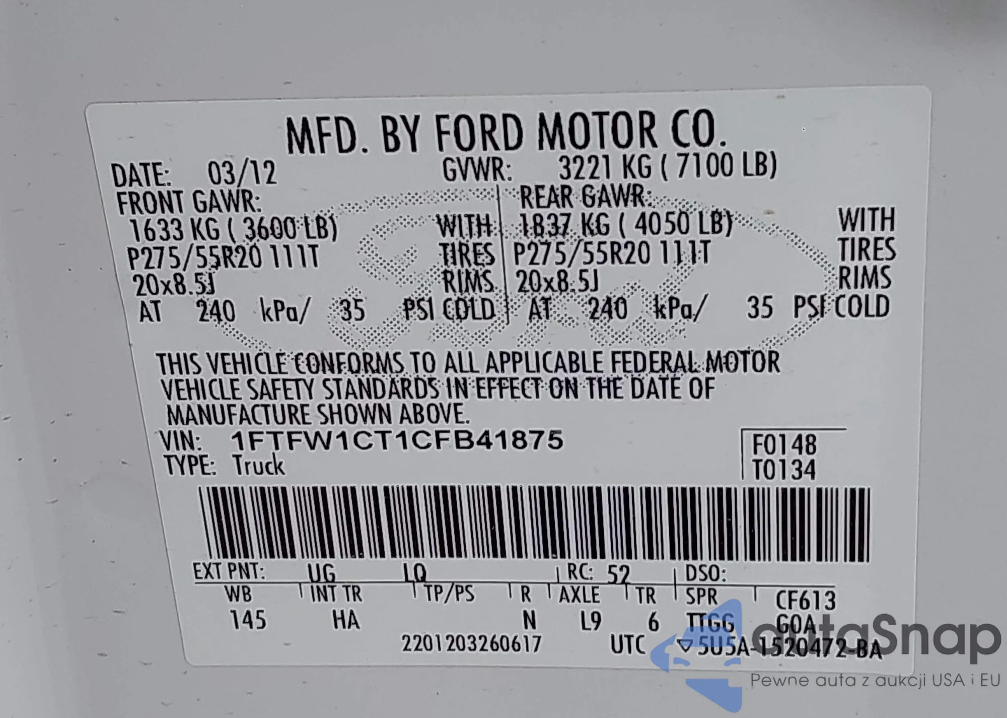 VIN: 1FTFW1CT1CFB41875