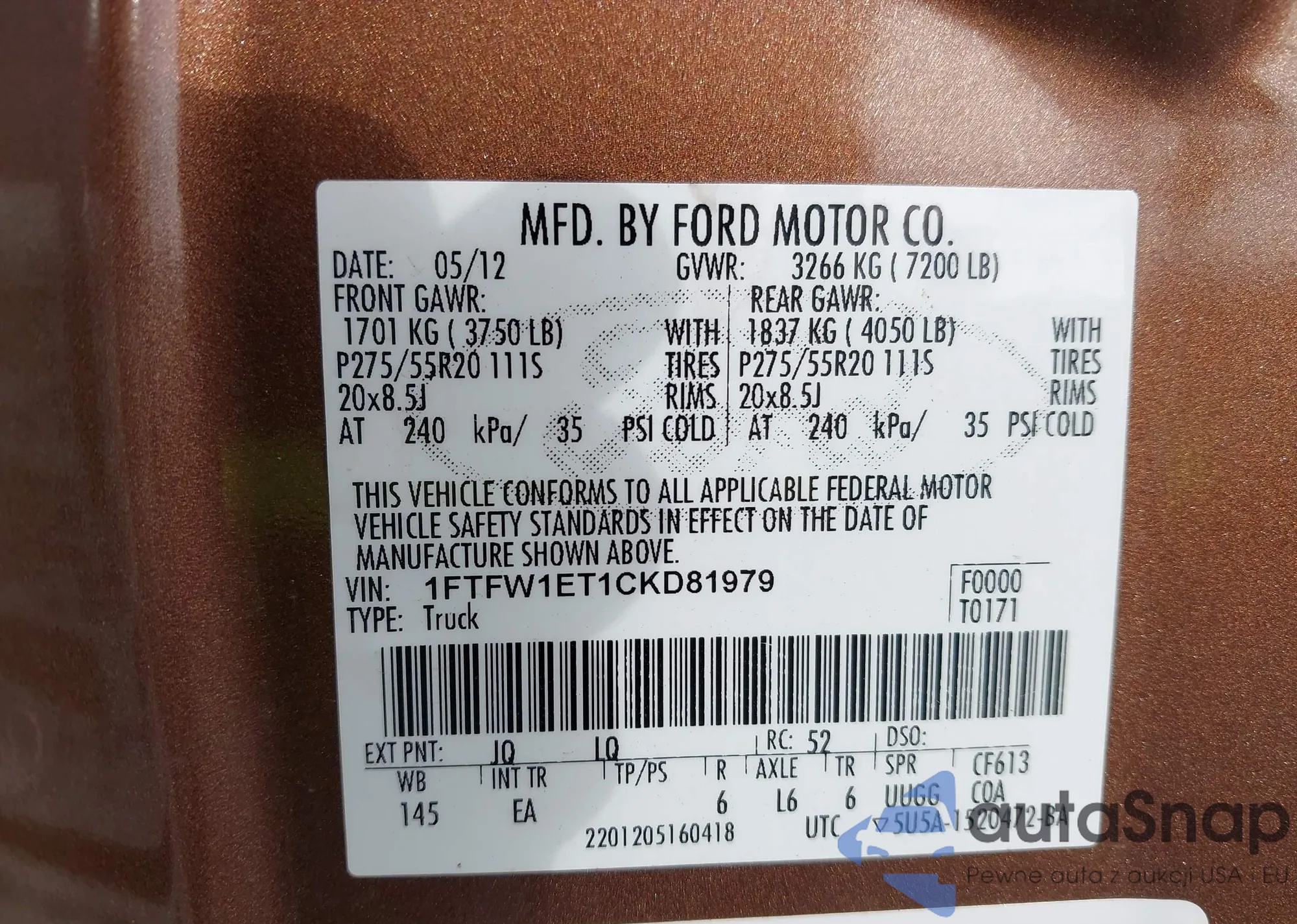 VIN: 1FTFW1ET1CKD81979