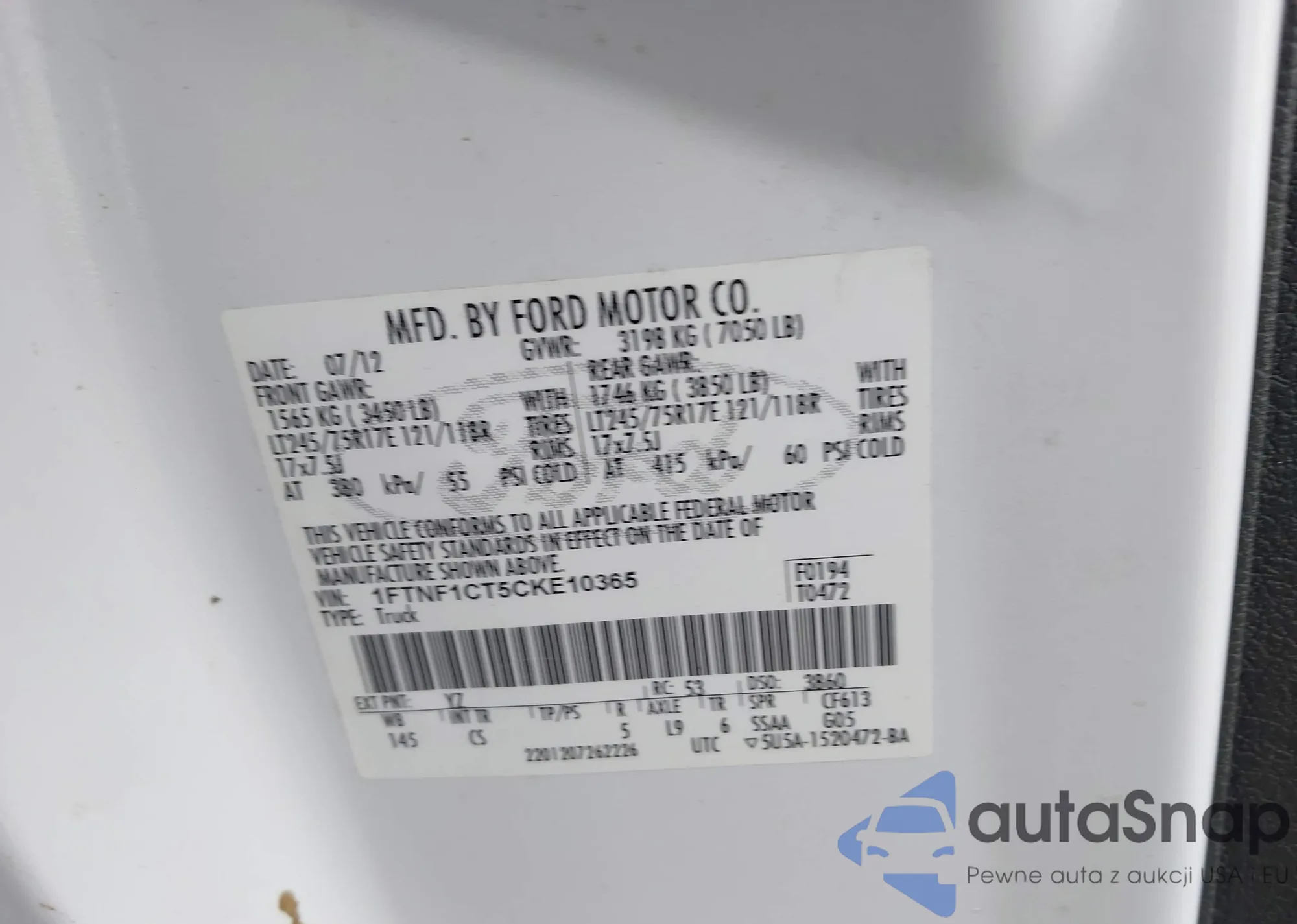 VIN: 1FTNF1CT5CKE10365