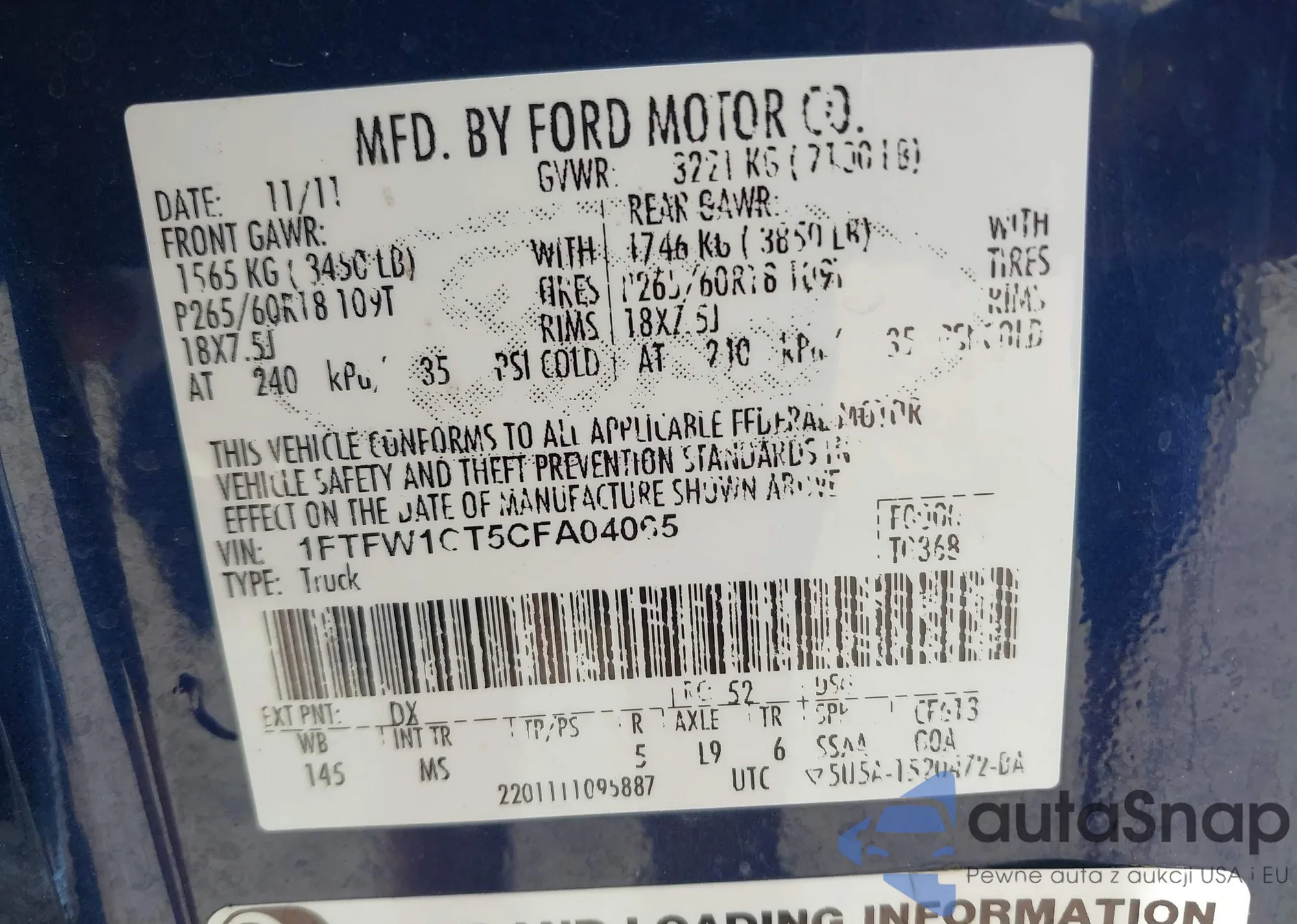 VIN: 1FTFW1CT5CFA04065