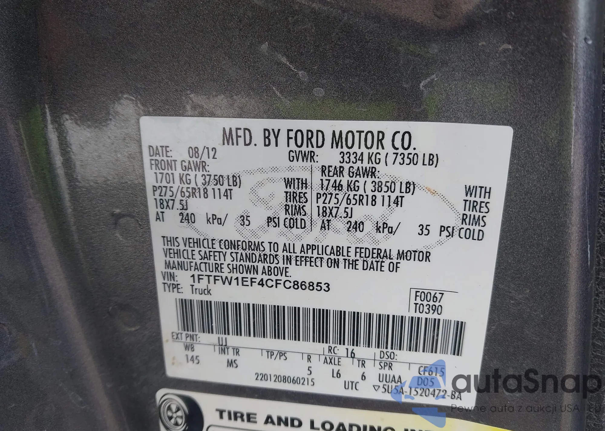 VIN: 1FTFW1EF4CFC86853