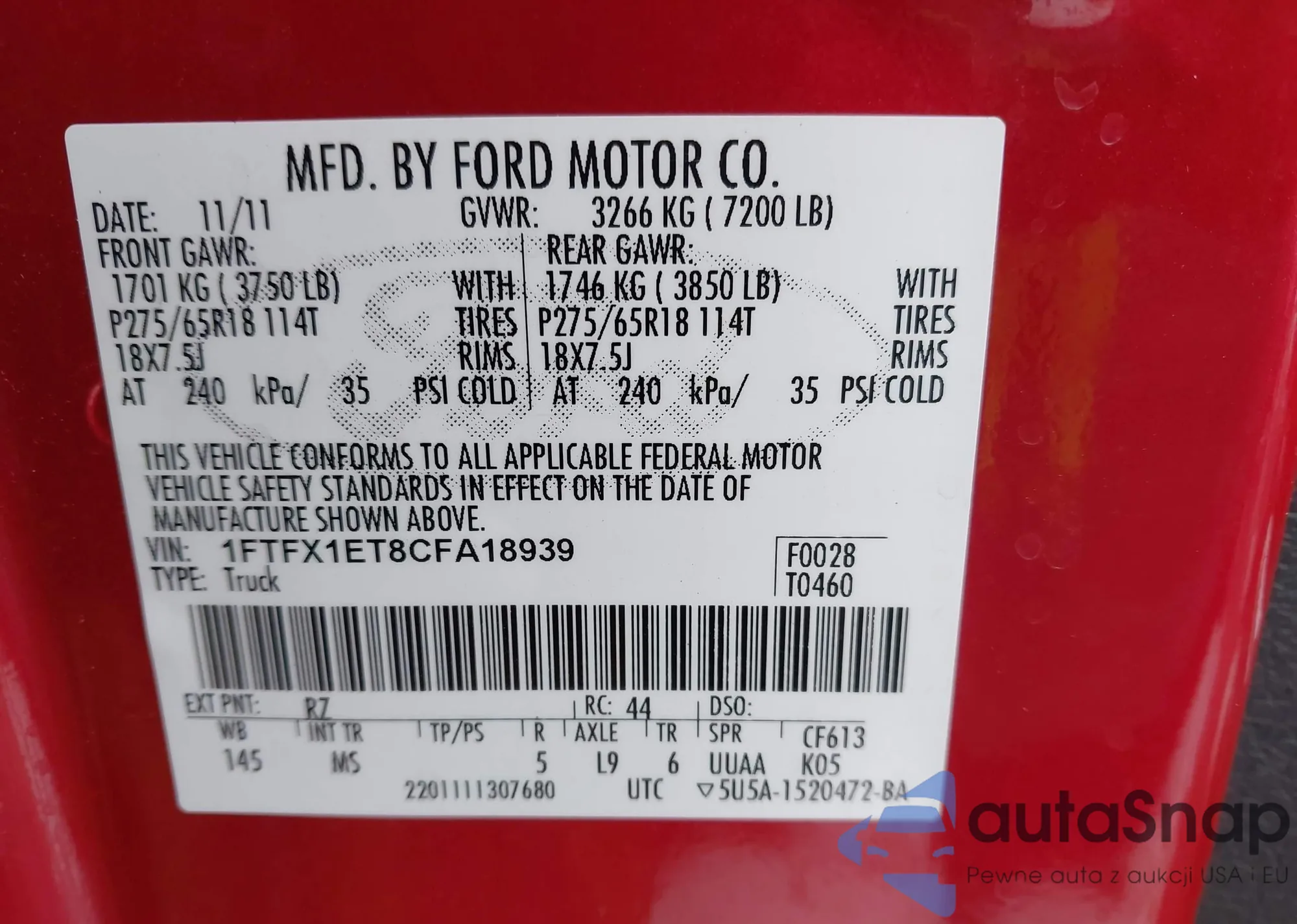 Автомобиль Ford F-150 2012 (VIN 1FTFX1ET8CFA18939) ранее не участвовал в торгах. Документы чистые, пробег соответствует или ниже среднего по рынку. Продаётся страховой компанией — рекомендуем покупку. Доставка в порт займет около 6–8 недель.