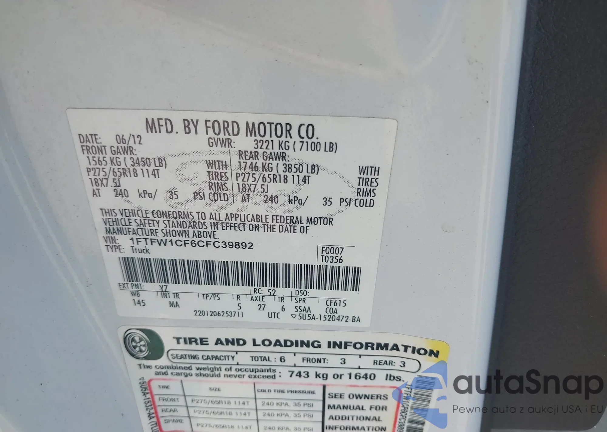 VIN: 1FTFW1CF6CFC39892