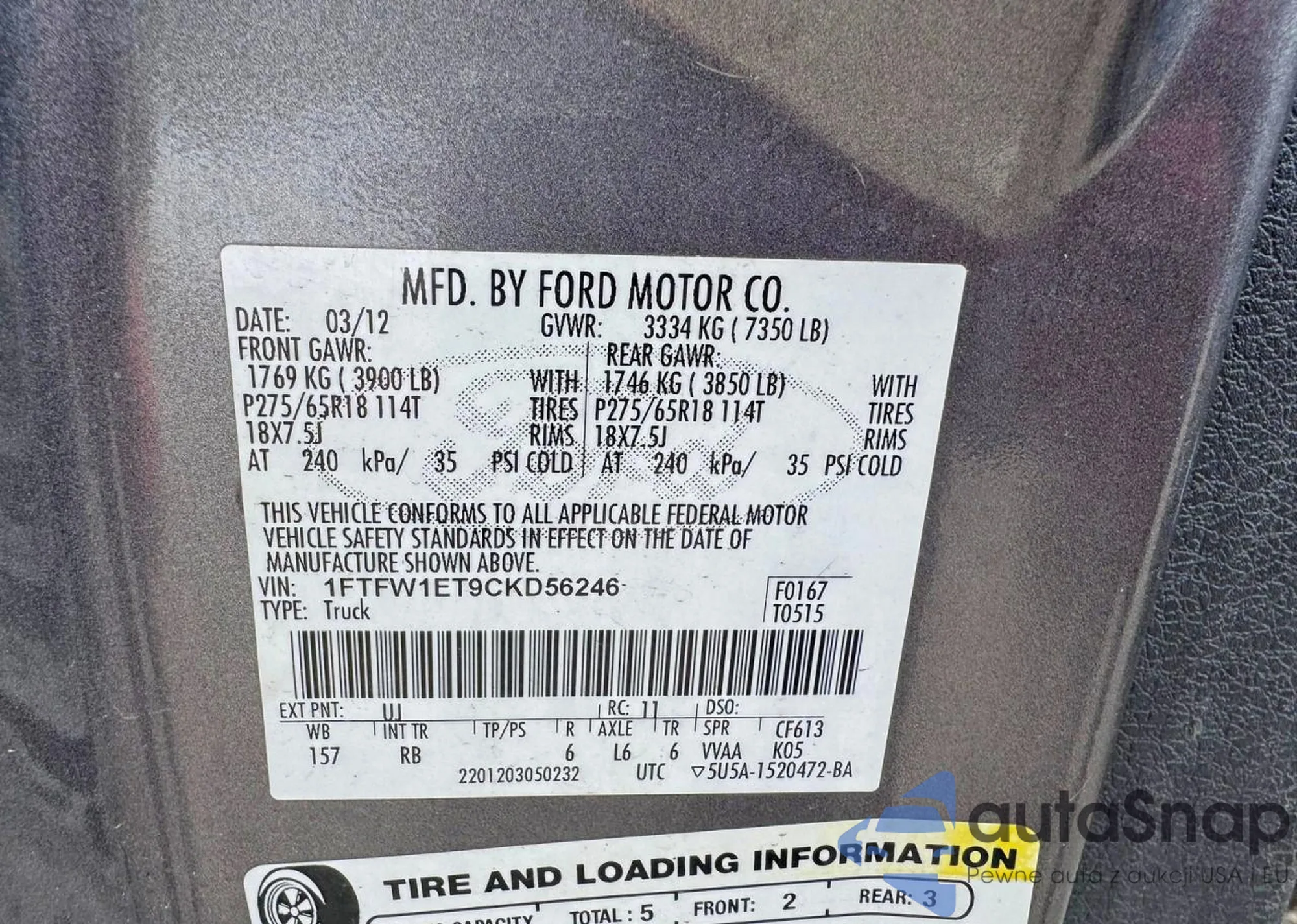 Автомобиль Ford F-150 2012 (VIN 1FTFW1ET9CKD56246) уже участвовал в торгах 1 раз(а) и/или продаётся непроверенным продавцом. Рекомендуем проверить отчет Carfax и подтвердить возможность регистрации перед покупкой.