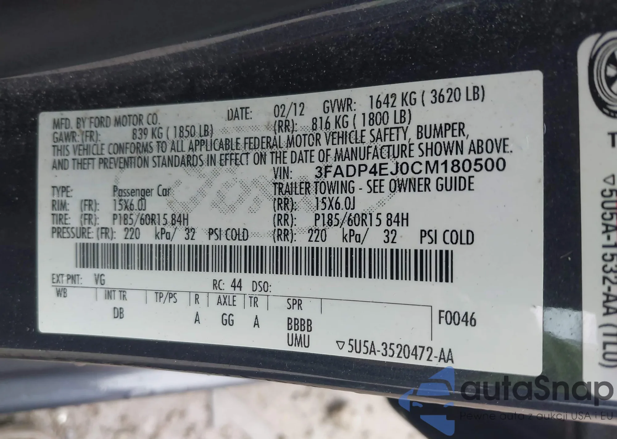 VIN: 3FADP4EJ0CM180500