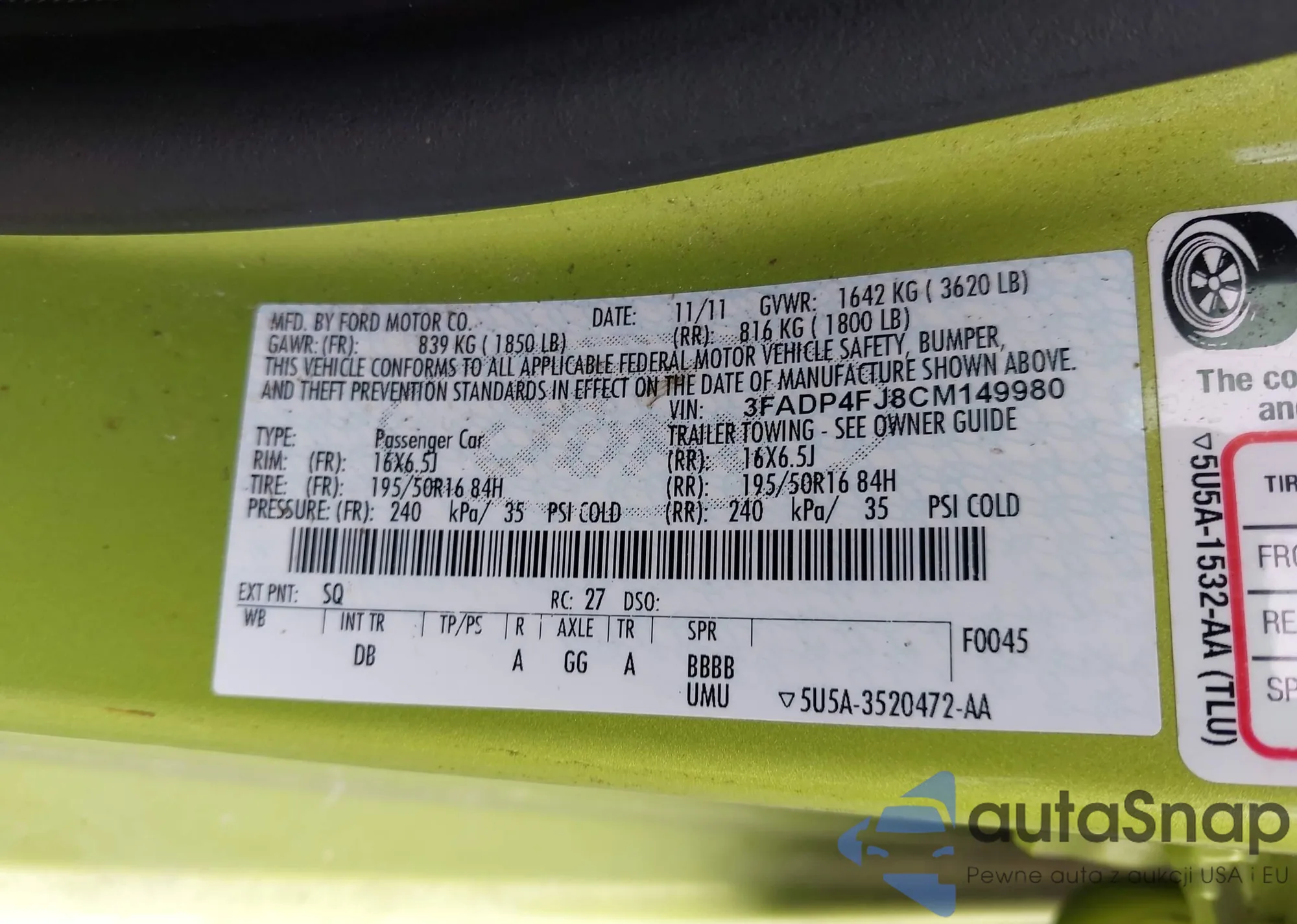 VIN: 3FADP4FJ8CM149980